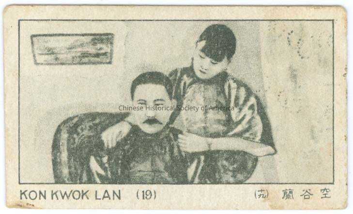 Trade card, Chinese woman puts arms around sitting Chinese manEntry/Object ID