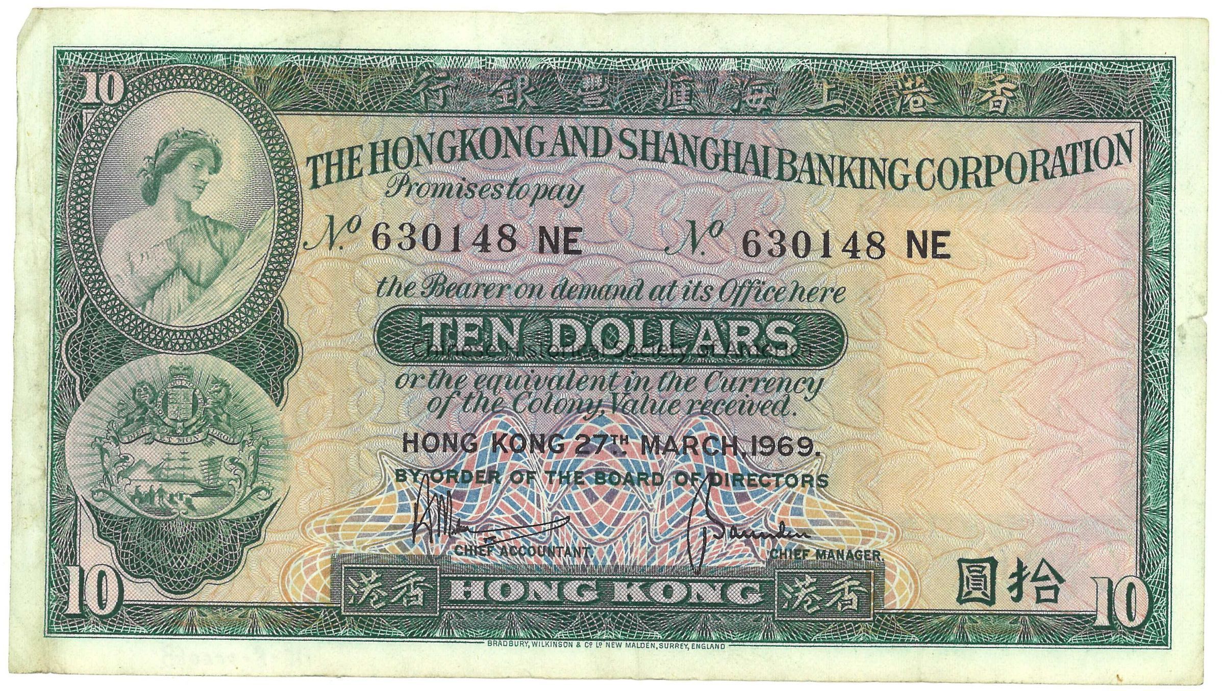 HSBC 10 Hong Kong dollars; No.: 630148NE