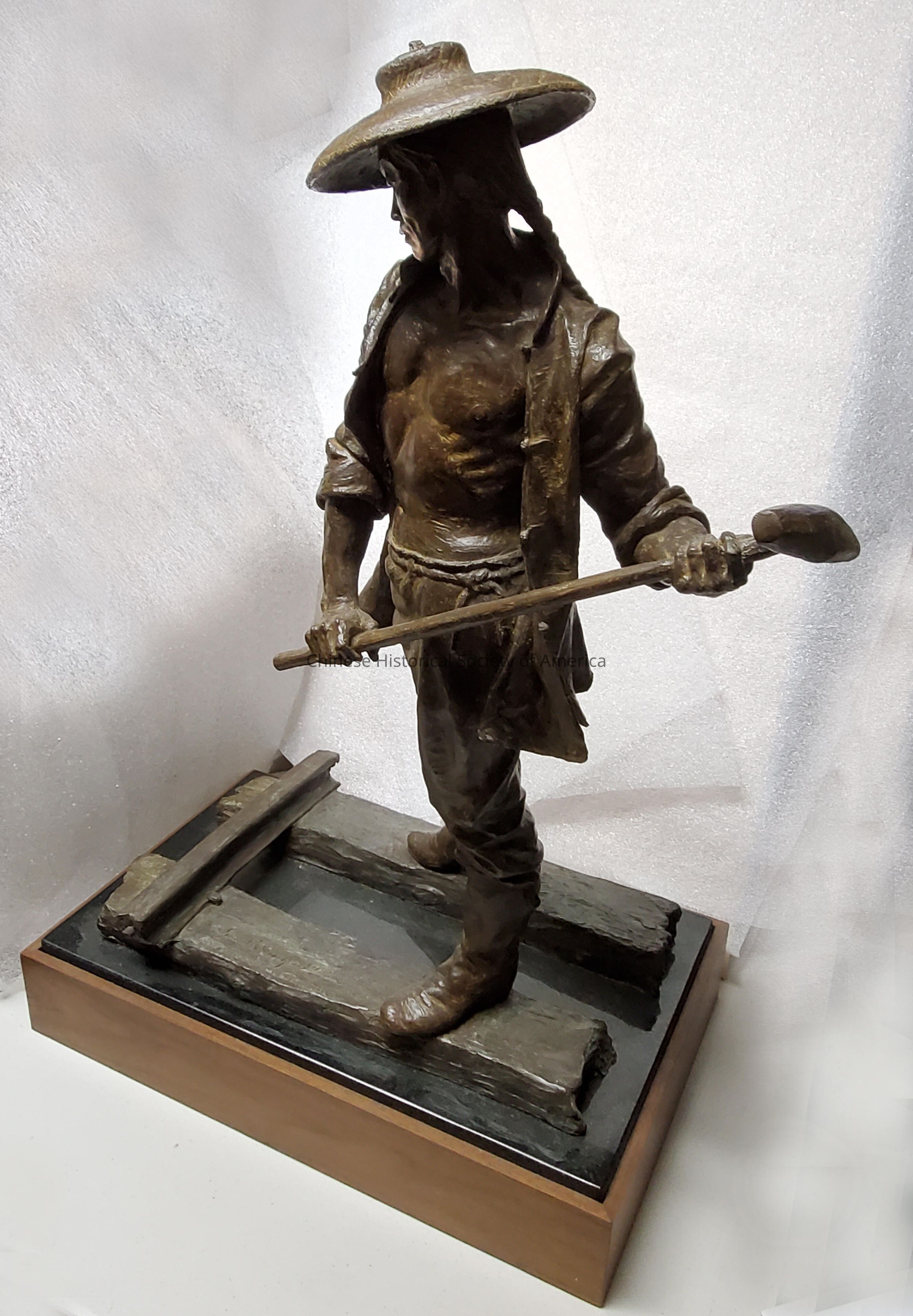 Title: Bitter Strength, is a casted bronze sculpture of an "American Chinese" worker.