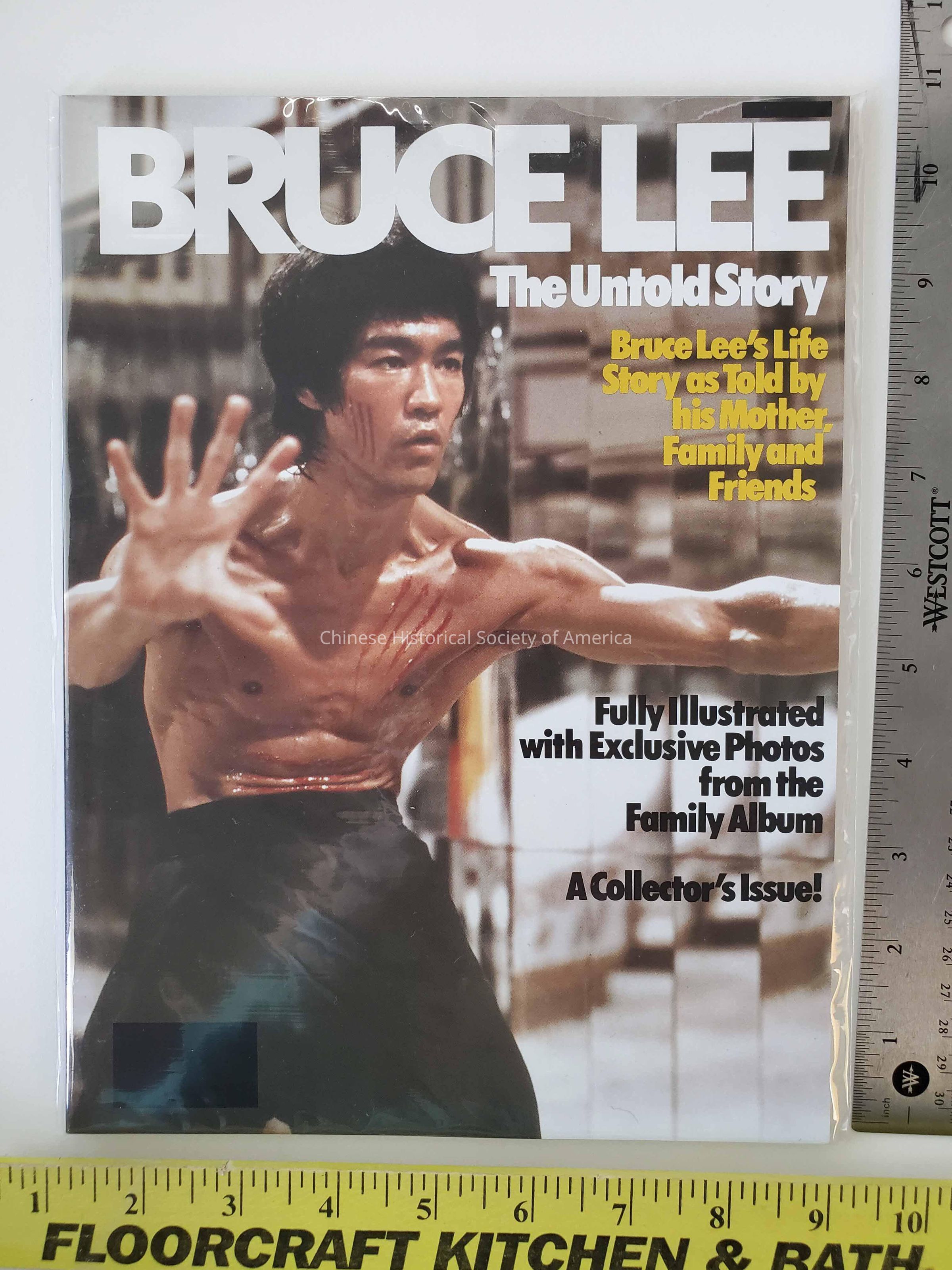 Jeff Chinn: Mostly written by Bruce Lee's mother - Grace Lee, in 1986; see story on pg.29. Story is he had such bad eye site, he did not see a window he was trying to throw peanut shells out of. Bruce Lee wore contacts on the set. Has photo of Bruce Lee in San Francisco with Coit Tower in background. JC#G-46.Dimensions