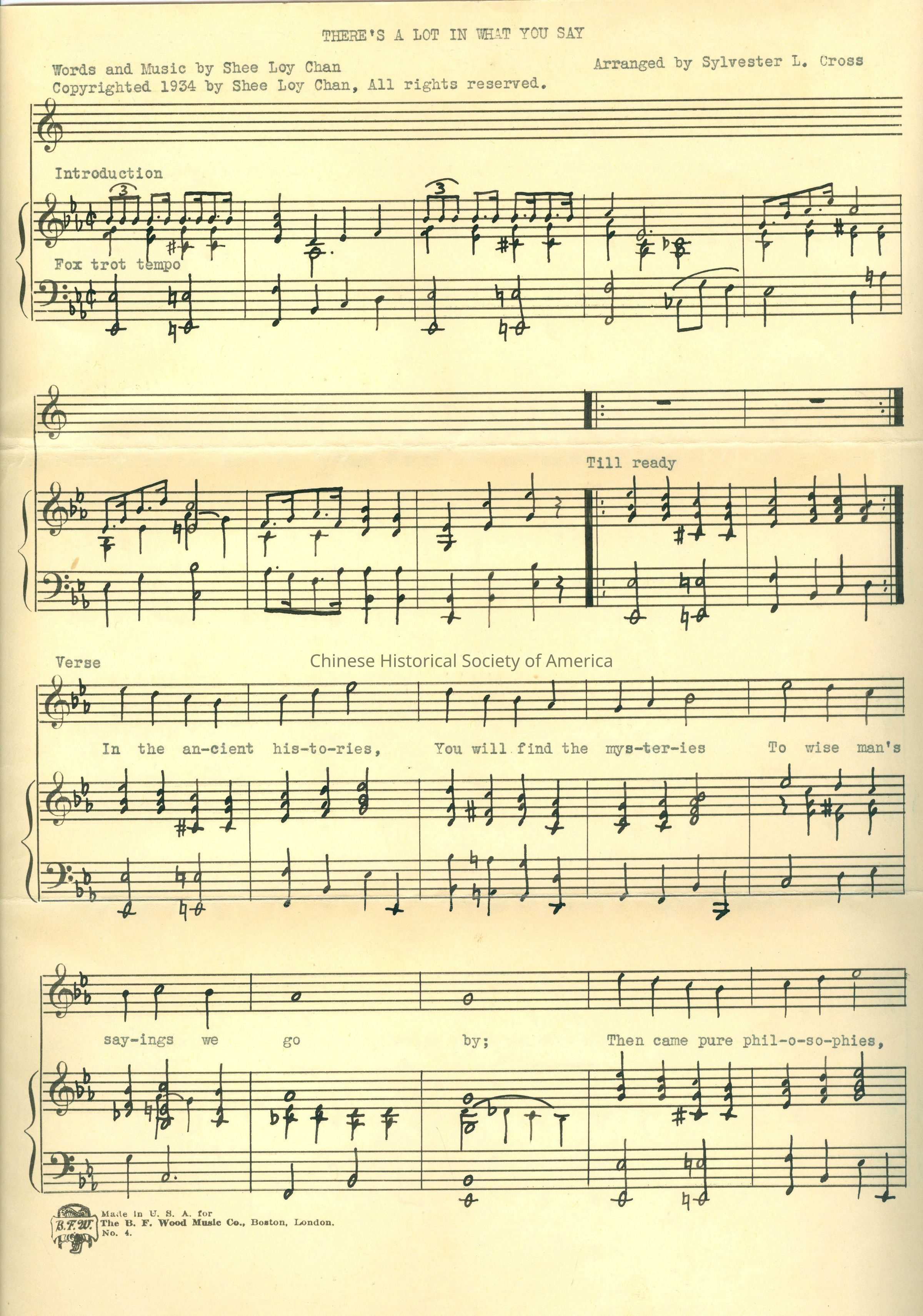 Sheet music for the song "There's a Lot in What You Say" by Shee Loy Chan.Archive Items Details