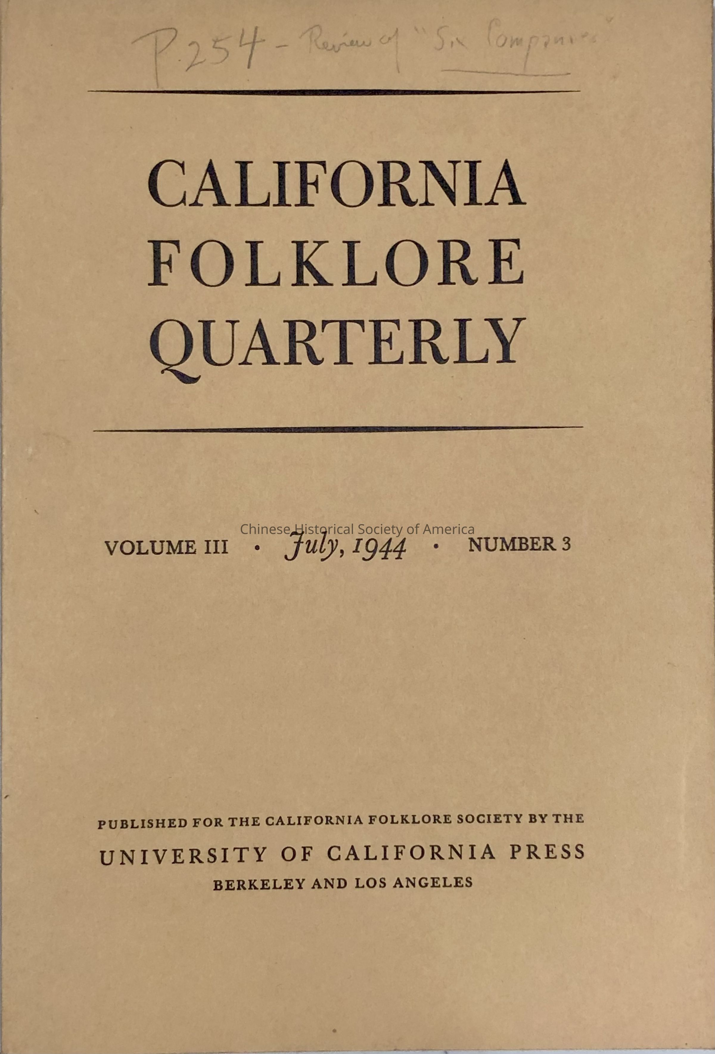 Quarterly magazine of the California Folklore Society, whose purposes are the collecting, preservation, and publication of folk materials of the State of CaliforniaContext