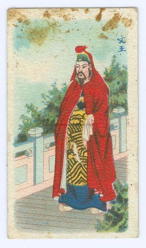 Color. Illus. England; London; W.D. & H.O. Wills: Illus. of a Chinese man in traditional Chinese clothing wearing a red cloak, he is on a bridge. Front: Caption: "Wen Wang" Back: Illus. of a pirate holding a sword, "PIRATE, Cigarettes W.D. & H.O. Wills Bristol & London." Old Accession #: N/A