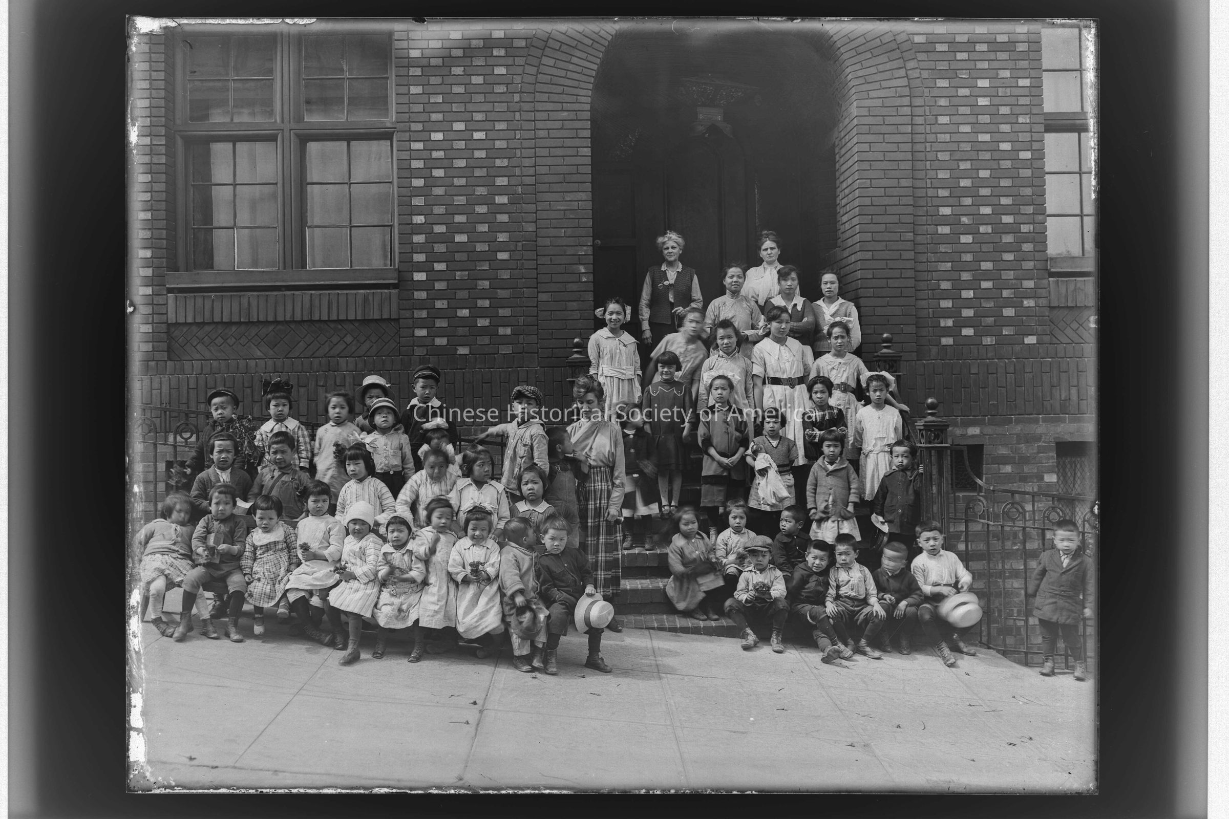 Children in front of Gum Moon Residence, on Washington St. Julia Morgan, architect.