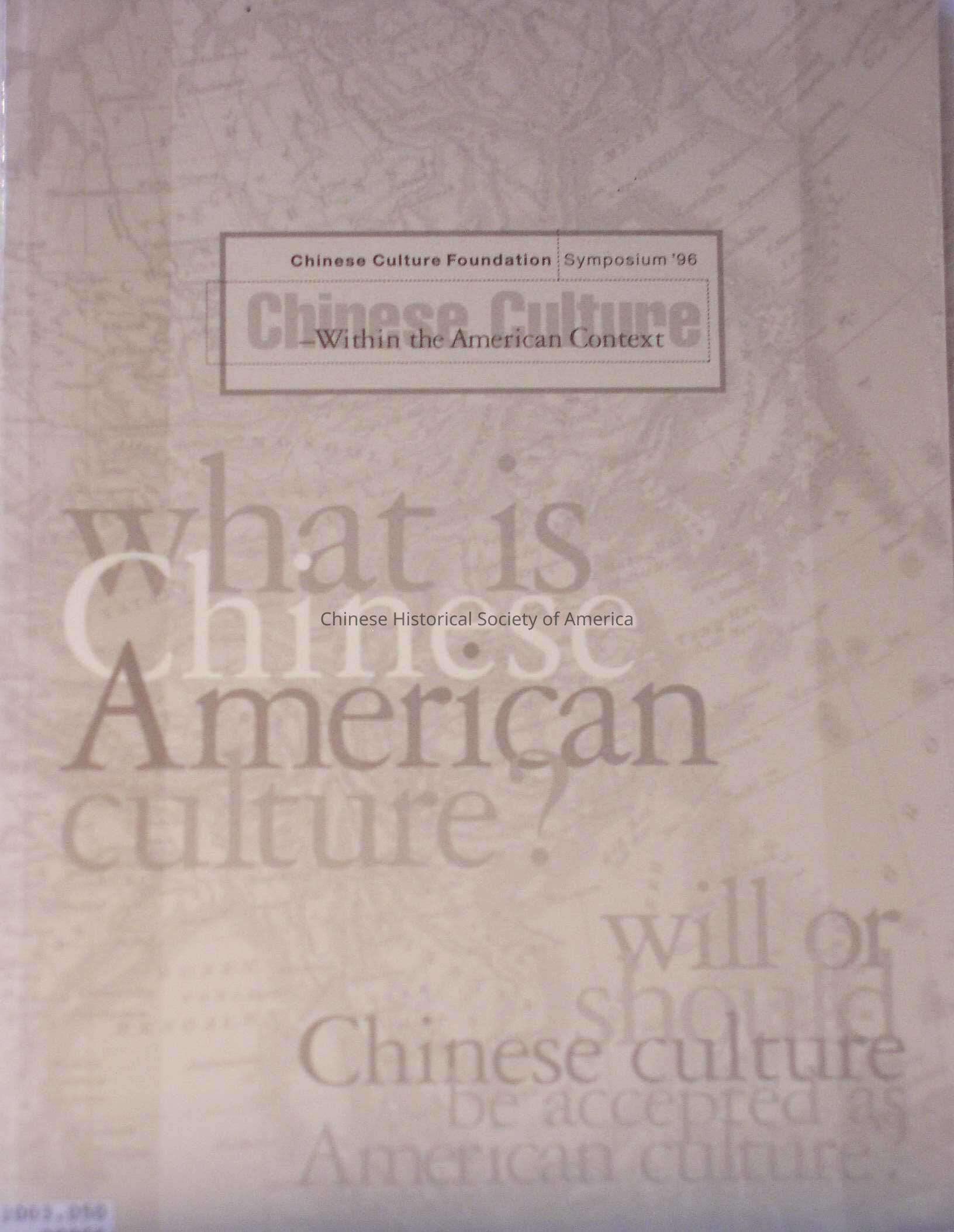Publication from Chinese Culture Foundation's 1996 "Chinese Culture Within the American Context" symposium. Includes essays by session panel leaders, essay responses by participants.Book Details