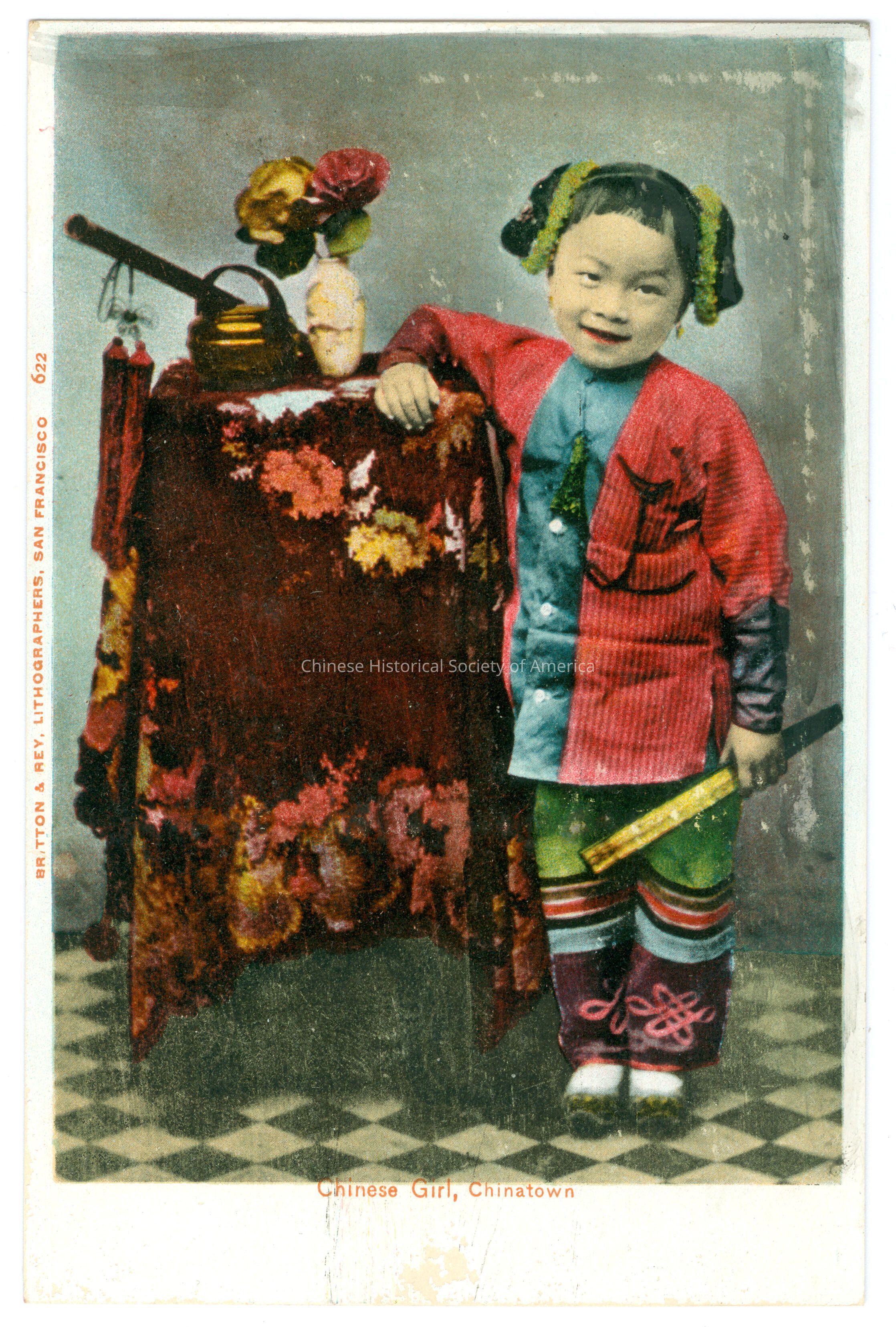 Front: Caption: "Chinese Girl, Chinatown." "Britton & Rey, Lithographers, San Francisco 622." Back: Old Accession #: N)Dimensions