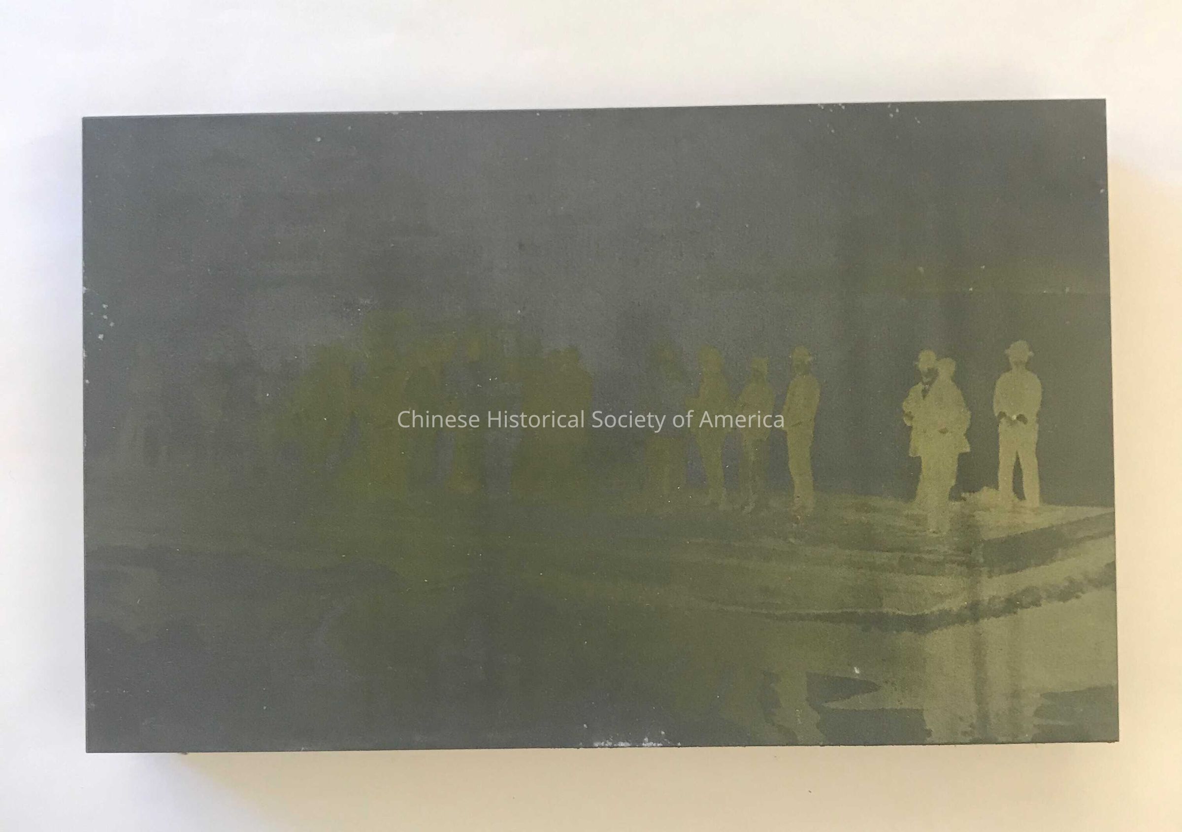 Printing Block depicts a group of Chinese people leaving Eureka, CA.