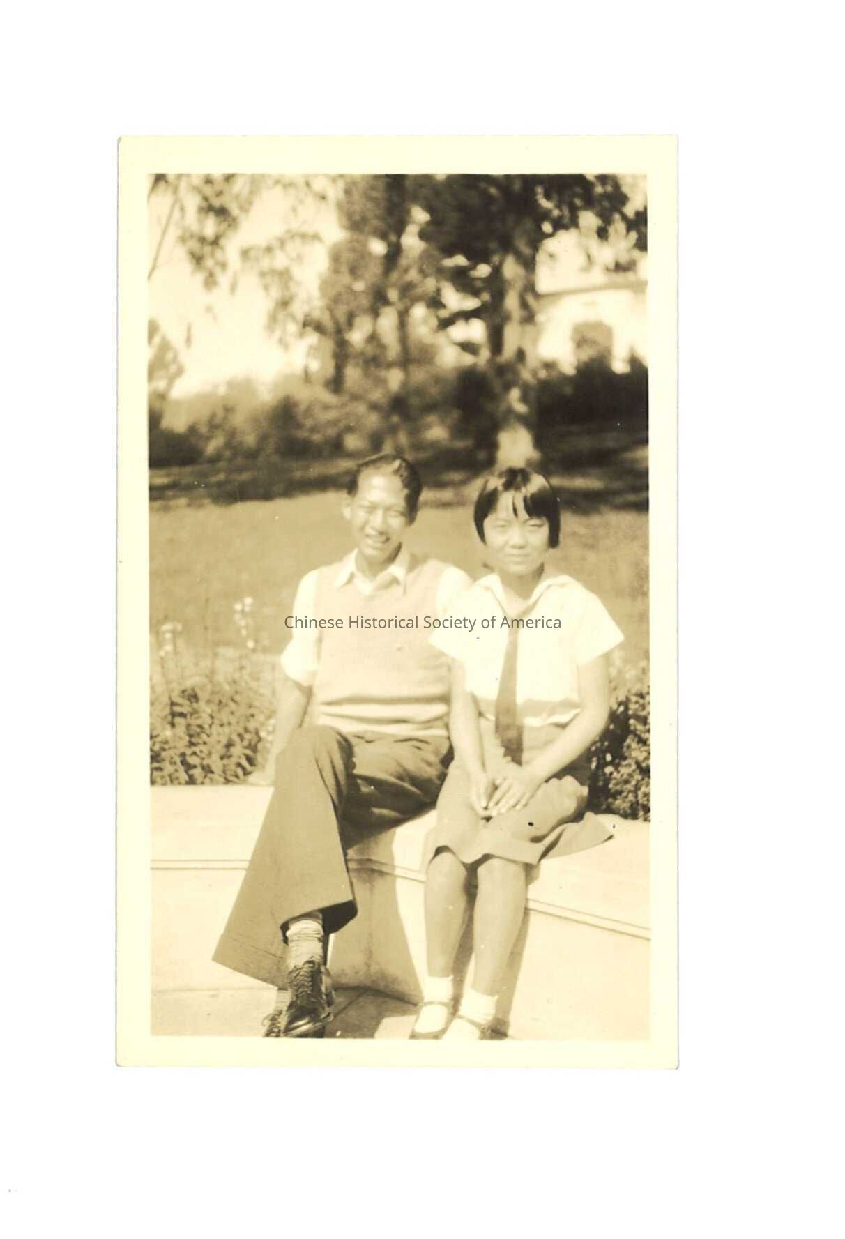 Chinese Male and Chinese Girl Sitting at the Park