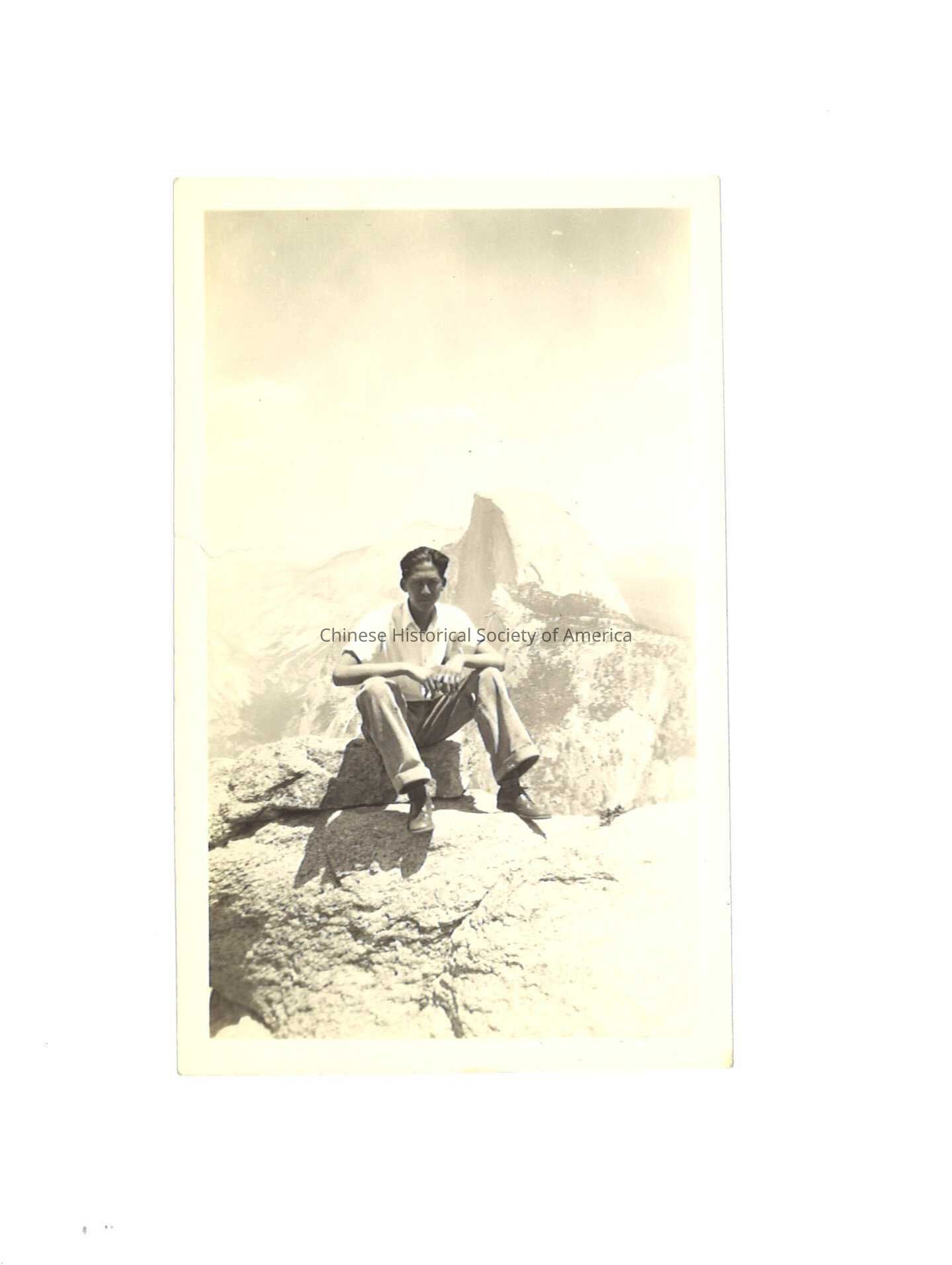 Chinese Man Sitting in Front of Half Dome, Yosemite