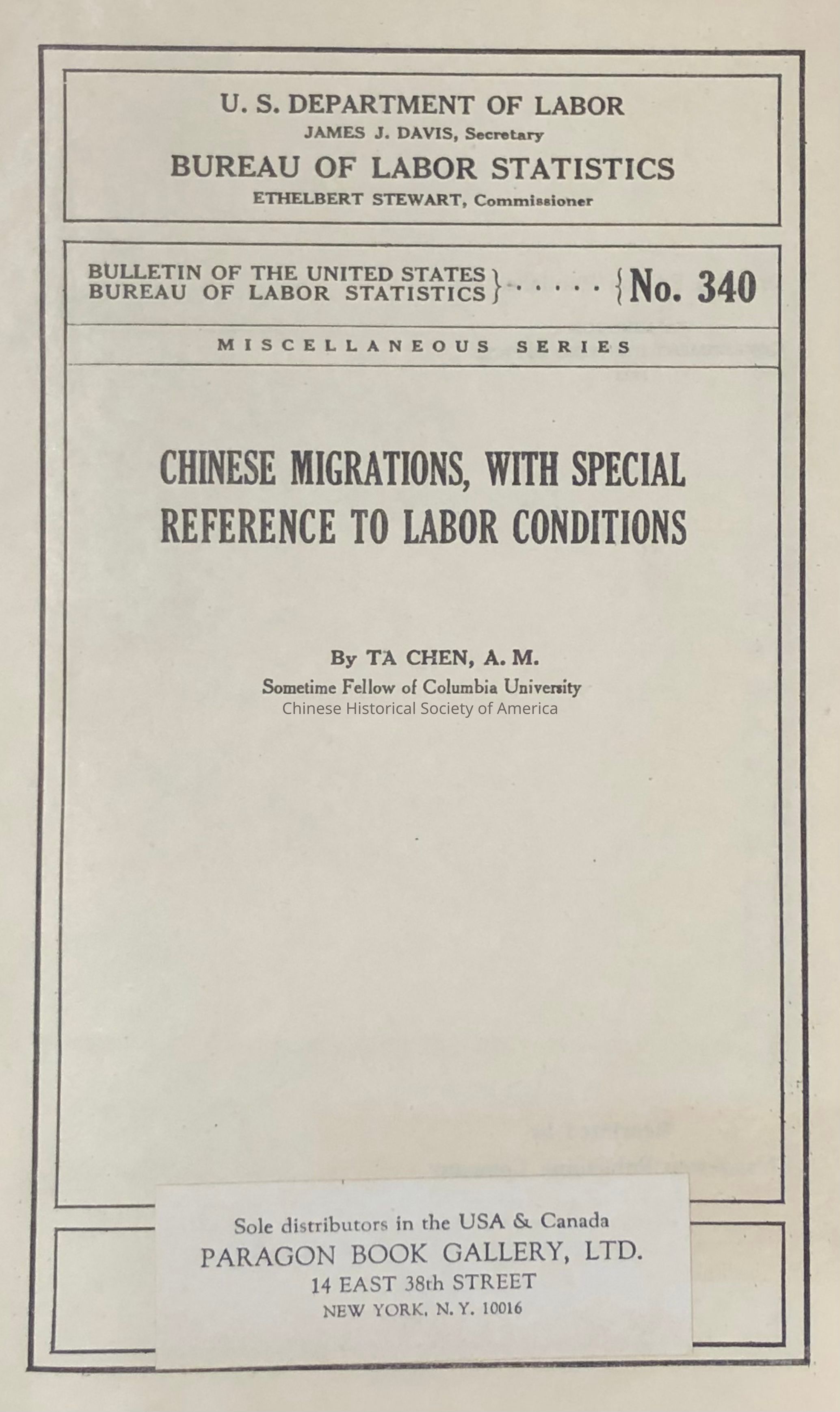 Chinese Migrations, with Special Reference to Labor ConditionsEntry/Object ID