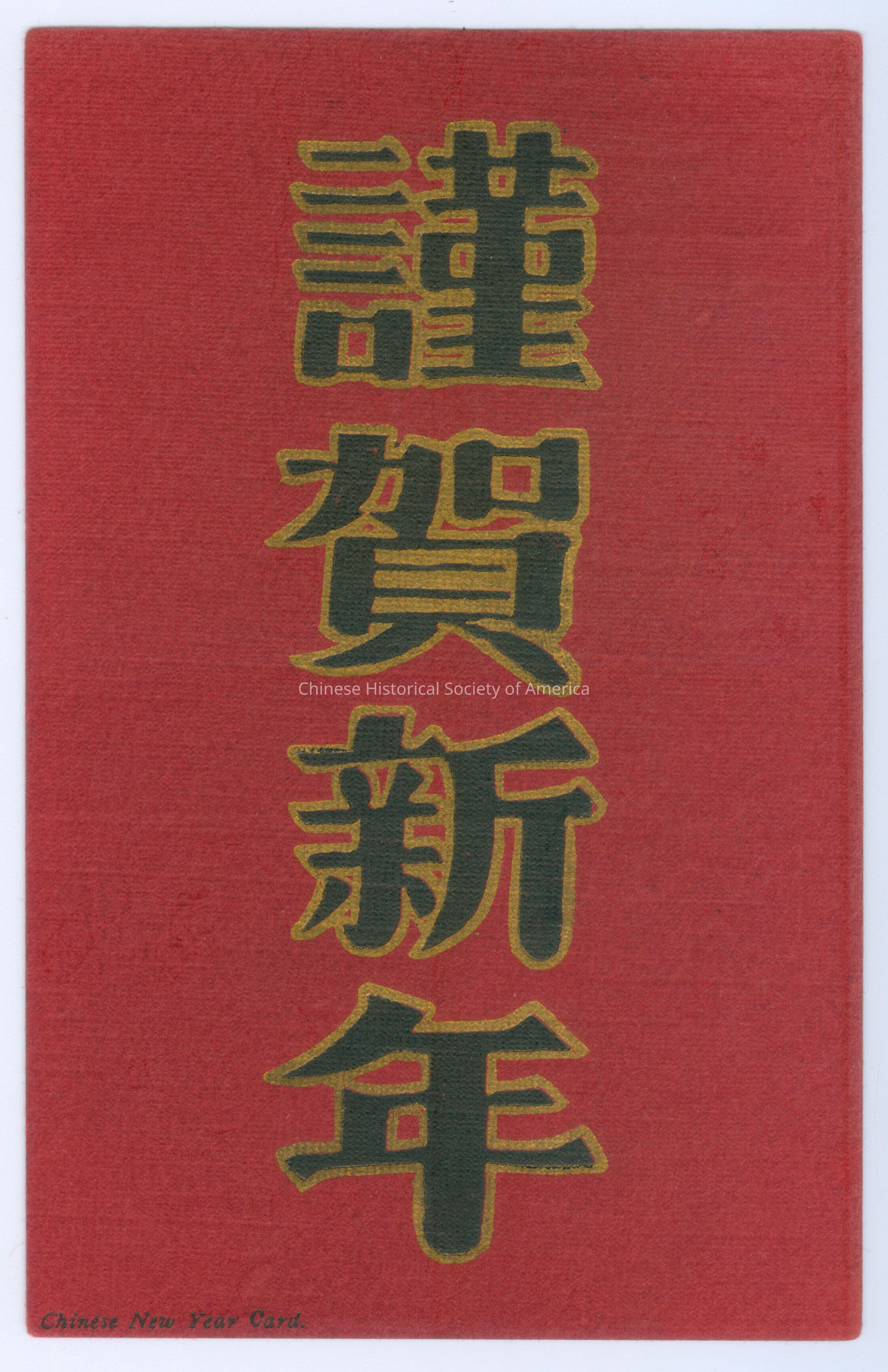 A-B: Front: Caption: "Chinese New Year Card." A: Back: There are Chinese characters. "Chinese New Year Post Card." "Copyright 1909, By G.J. Boisse, Honolulu, T.H." Old Accession #: D)-. B: Back: There are Chinese characters. Postmark: "Waialua, 2 PM, 1909" stamped in black. Stamp: A green one cent stamp with a picture of Benjamin Franklin, "Series 1902, United States of America, 1706 Franklin 1790, Postage One Cent." Message: Waialua Oahu 4/13/9 Blanche, The Chinese here had their New Year __ and I went to one of the ___. It was great."; "Miss Blanche ___, Minneapolis, Minnesota. 3000 Emerson Ave. __" handwritten in black. Old Accession #: AEX
