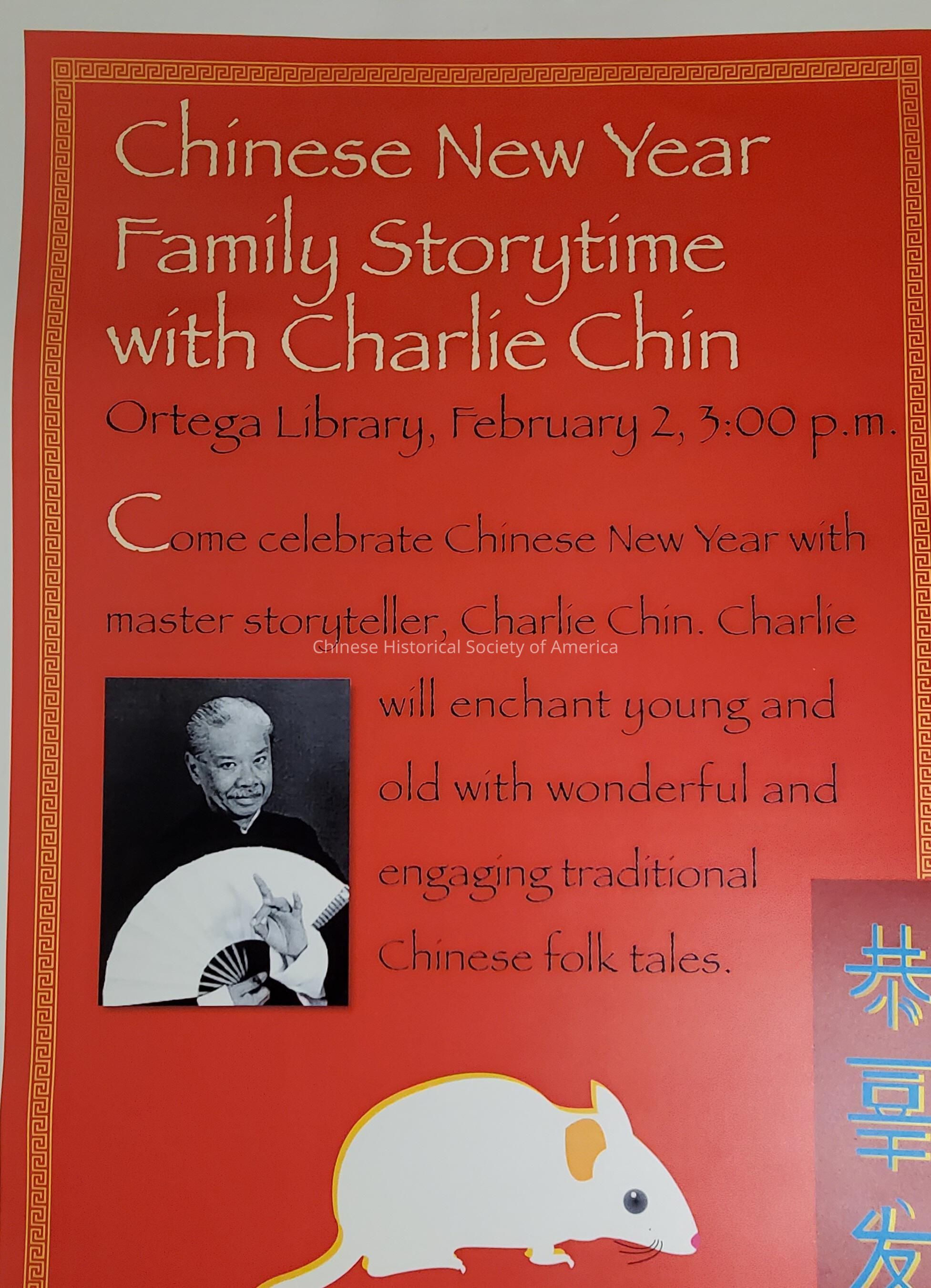 Chinese New Year programming advertisement or the SFPL Ortega Branch Library, San Francisco