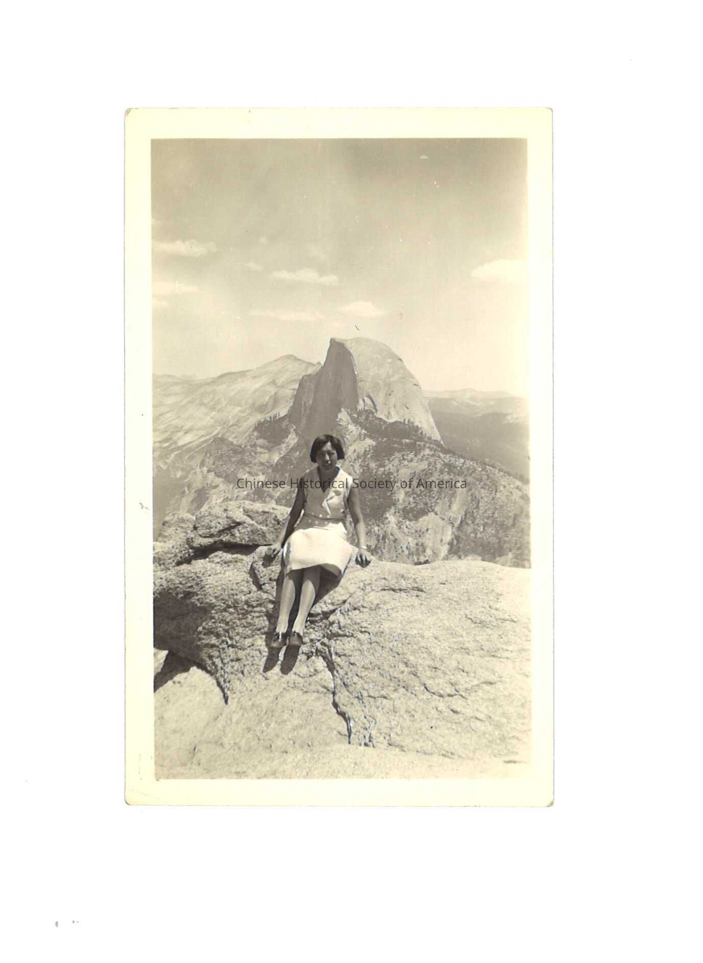 Chinese Woman Sitting in Front of Half Dome, Yosemite