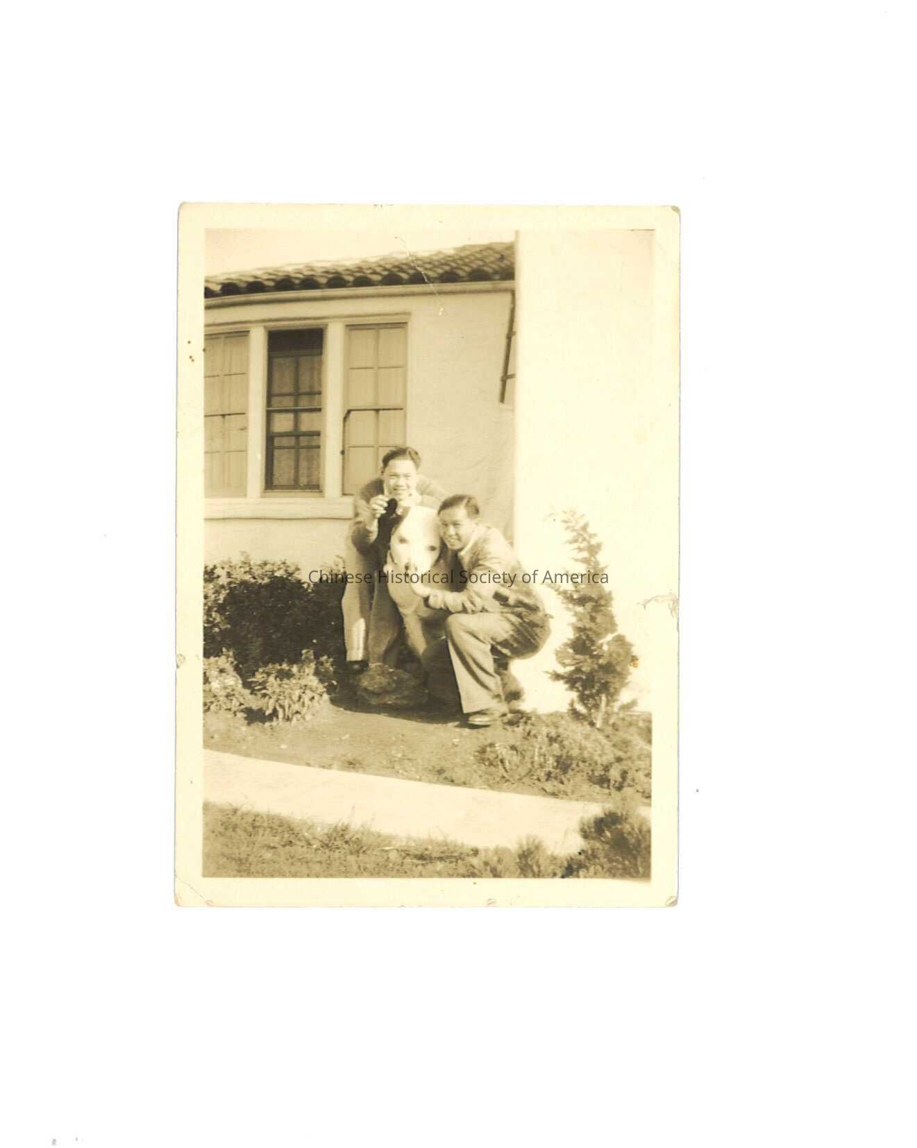 2 Chinese Men Posing with a RCA Dog