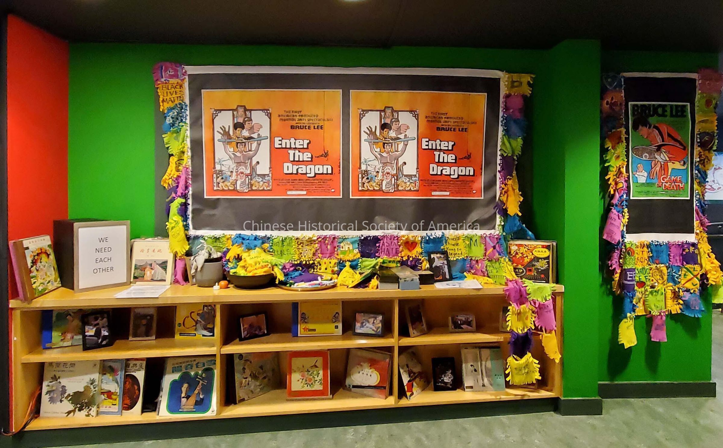 Painted poster for “Enter the Dragon” surrounded by felt squares designed by museum visitors and African American and Asian American seniors and youth.Artwork Details
