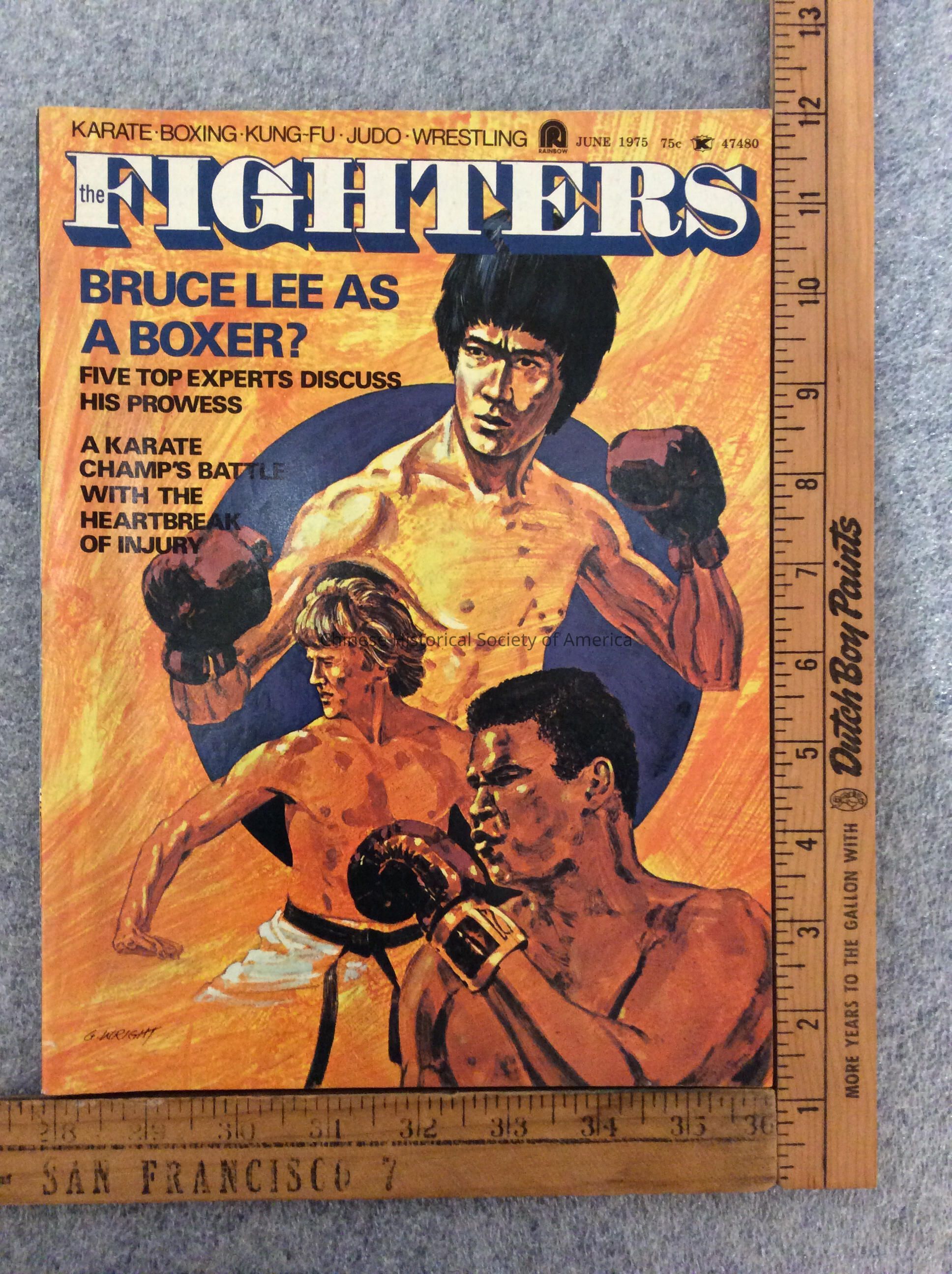 "Fighters" at the top of the front cover, illustration of Bruce Lee and other figures at the center of the front coverDimensions