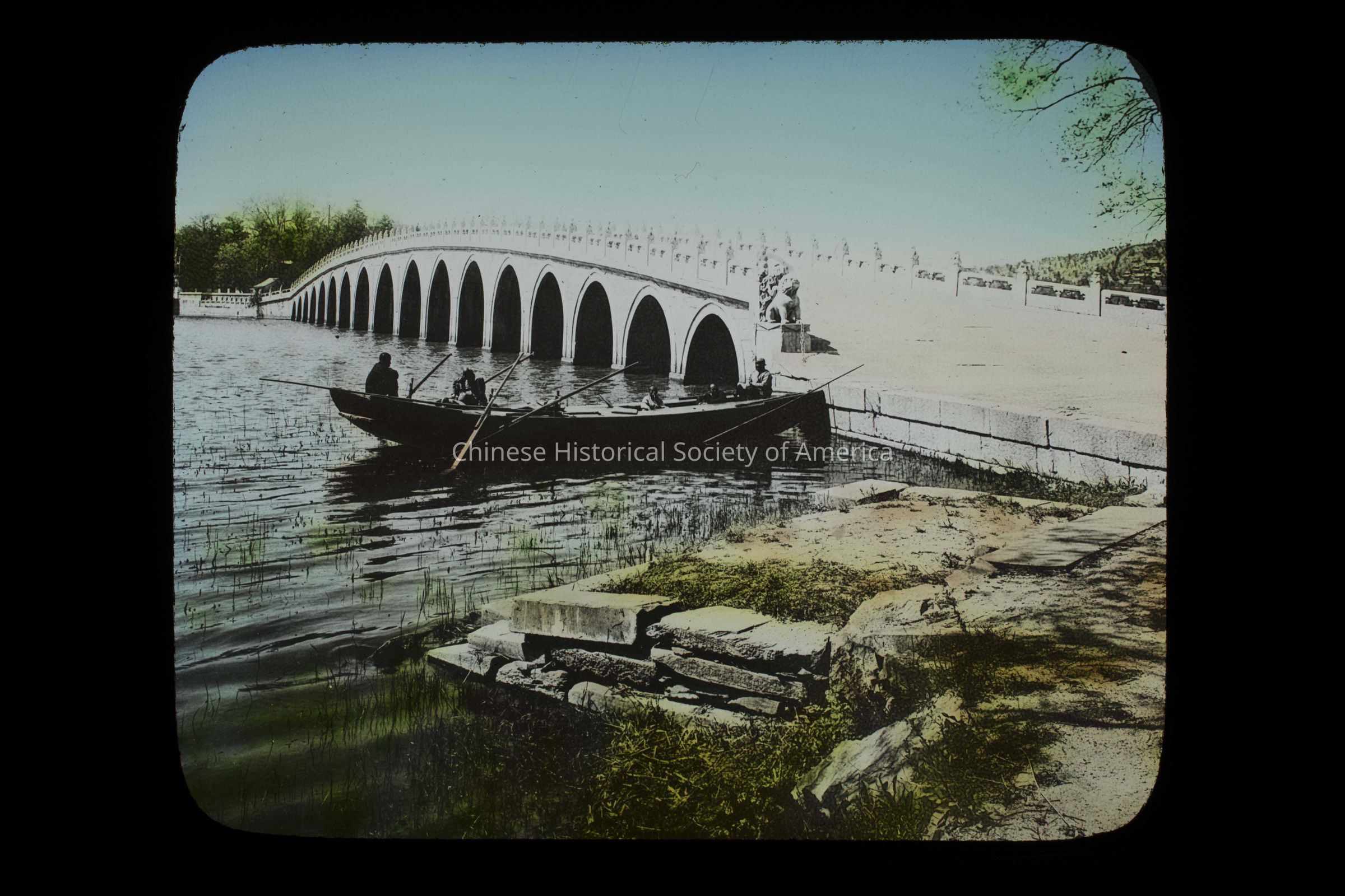 Text in the front: "China", handwritten in white; "Canadian Pacific Railway"; "China. Peking. Marble Bridge.", typed in black on a paper glued to the slide.