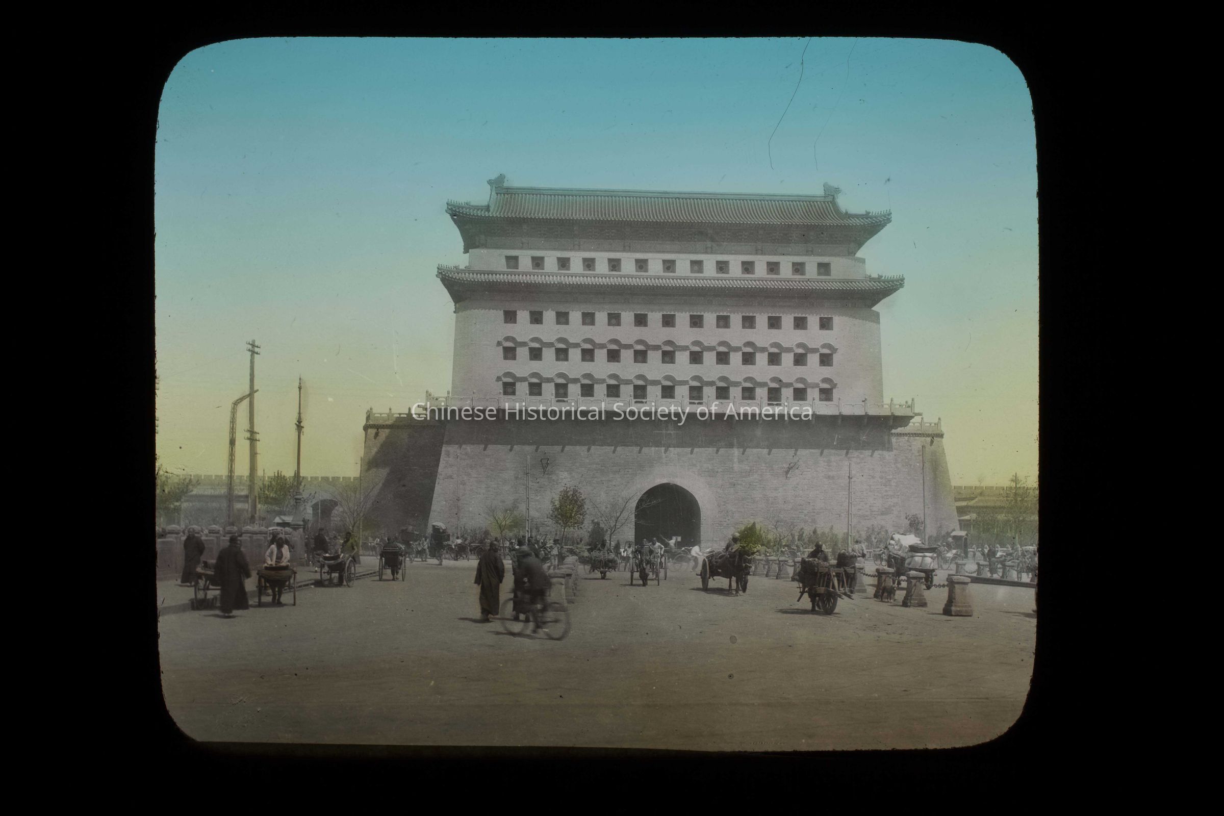 Text in the front: "China", handwritten in white; "Canadian Pacific Railway"; "China. Peking. Chien Men Gate.", typed in black on a paper glued to the slide.