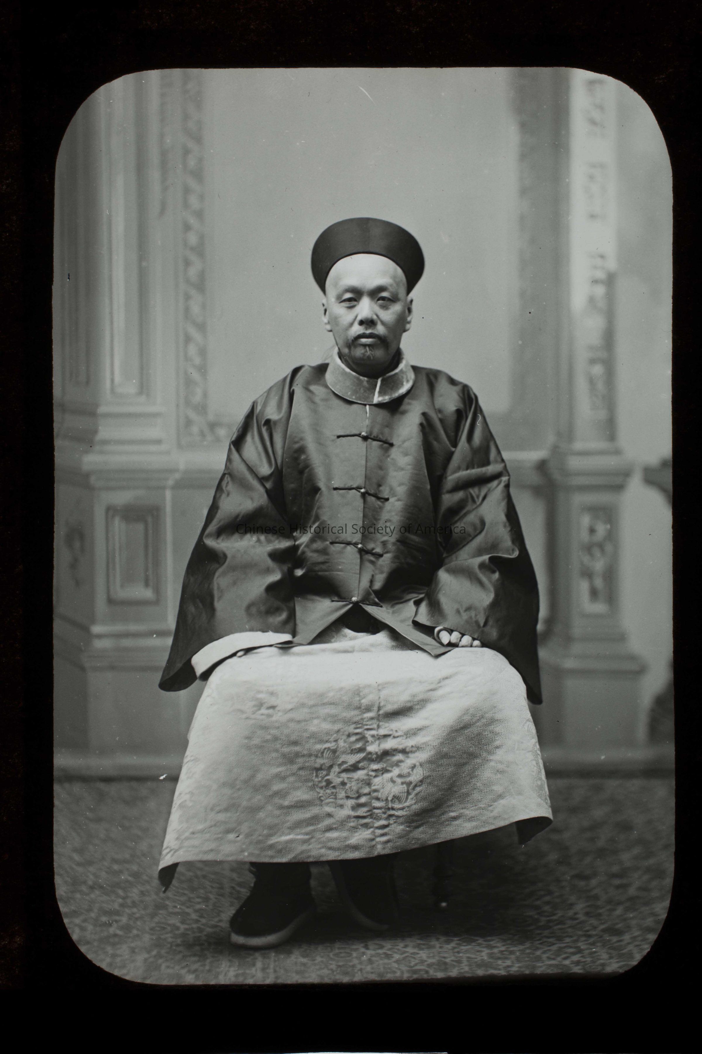 Text in the front: "Lee Sing Hong: Chinese Minister", handwritten in white; "1898", handwritten in white; "Chong Yen Hoon Chinese Minister", handwritten in white on the brown paper that is within the slide.