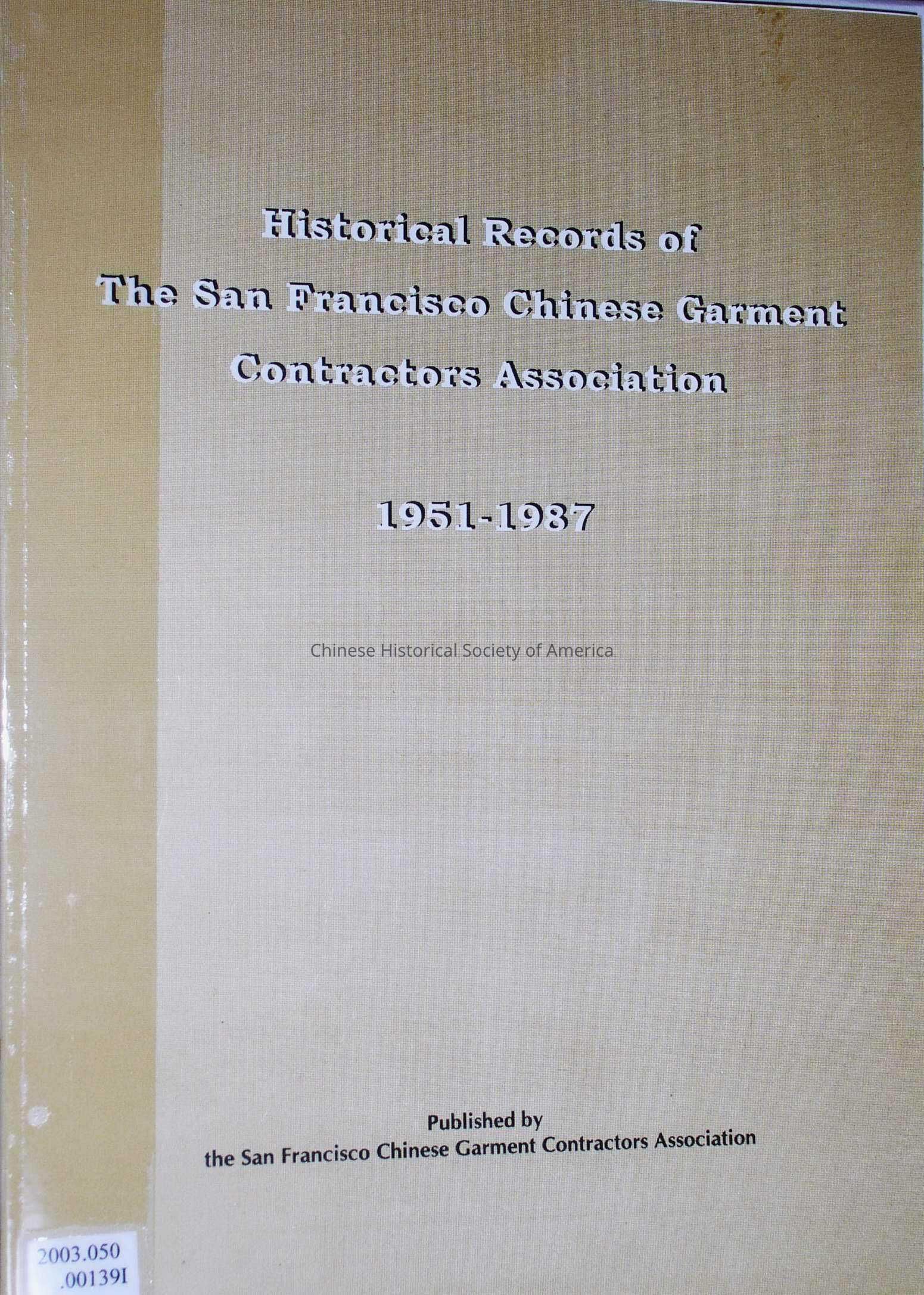 Historical Records of the San Francisco Chinese Garment Contractors Association 1951-1987Entry/Object ID