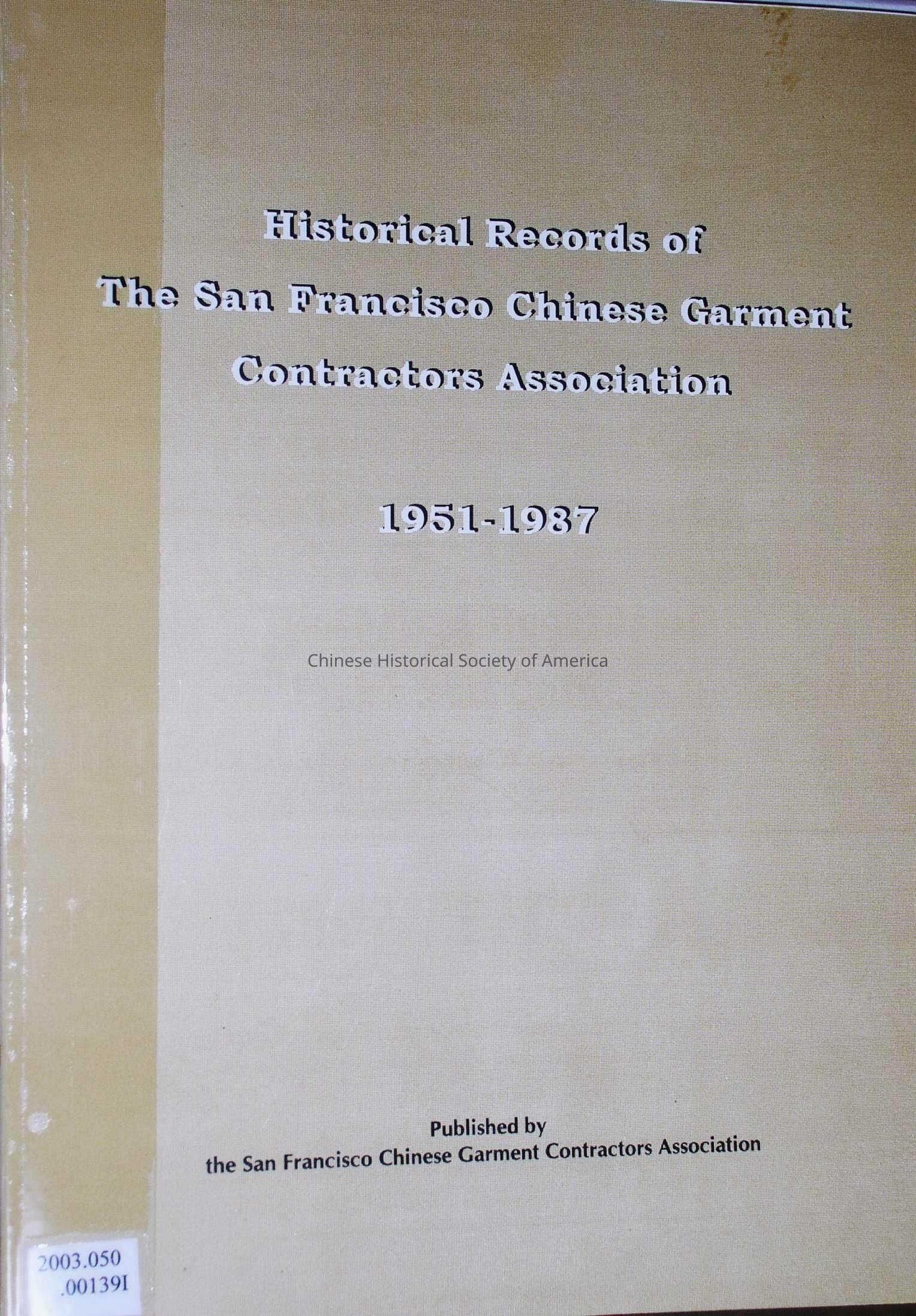 Historical Records of the San Francisco Chinese Garment Contractors Association 1951-1987Entry/Object ID