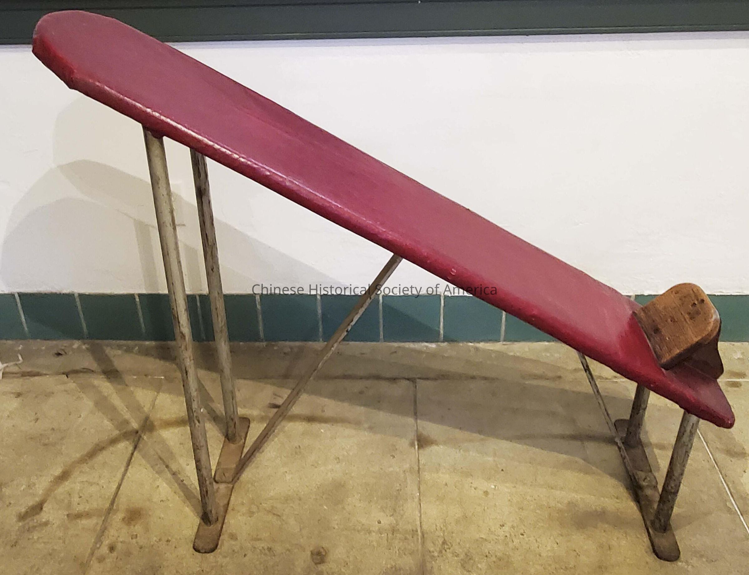 Fixed angle incline weight bench handmade by James Lee, early-mid 1950s.Context