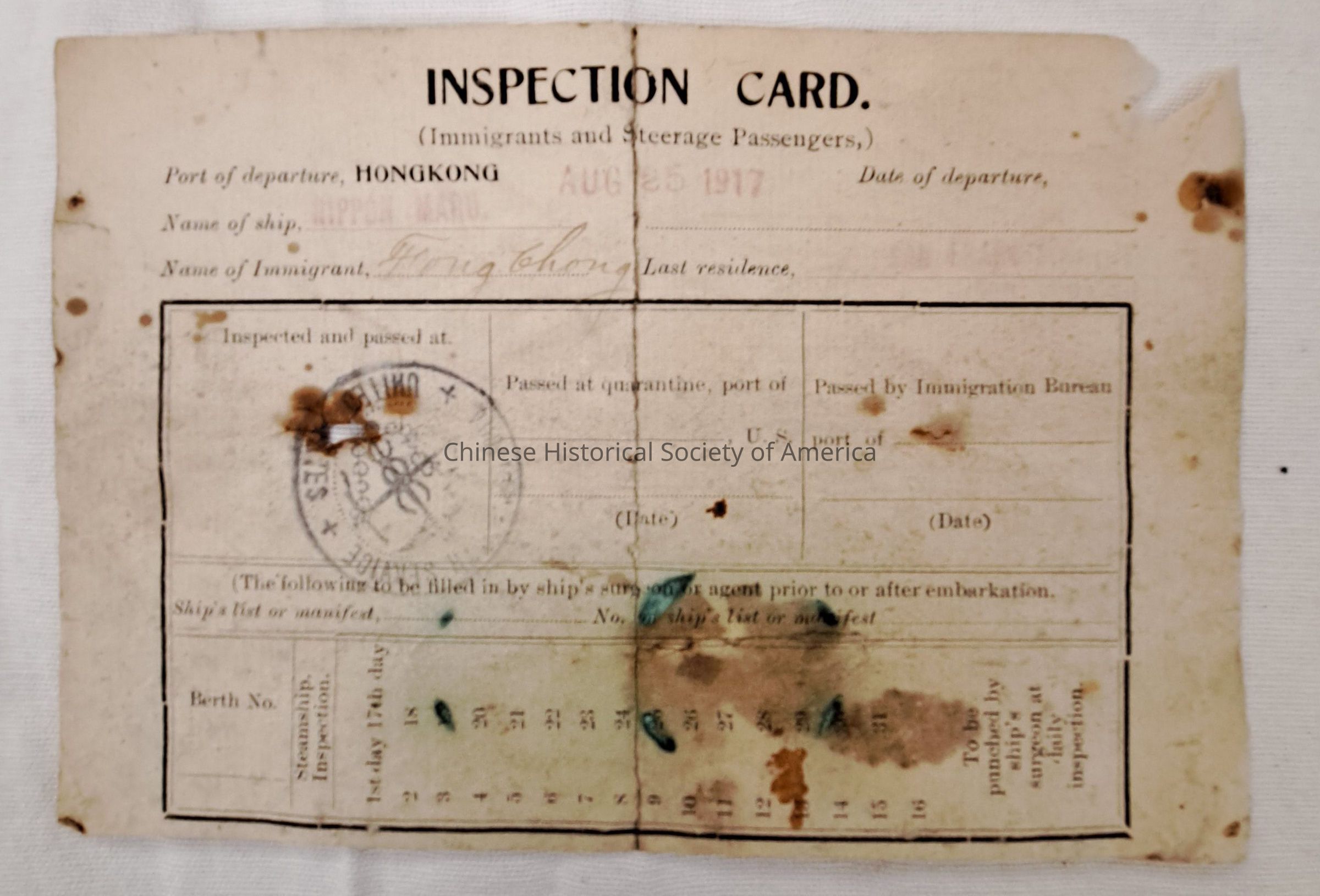 Inspection Card - (Immigrants and Steerage Passengers)Entry/Object ID