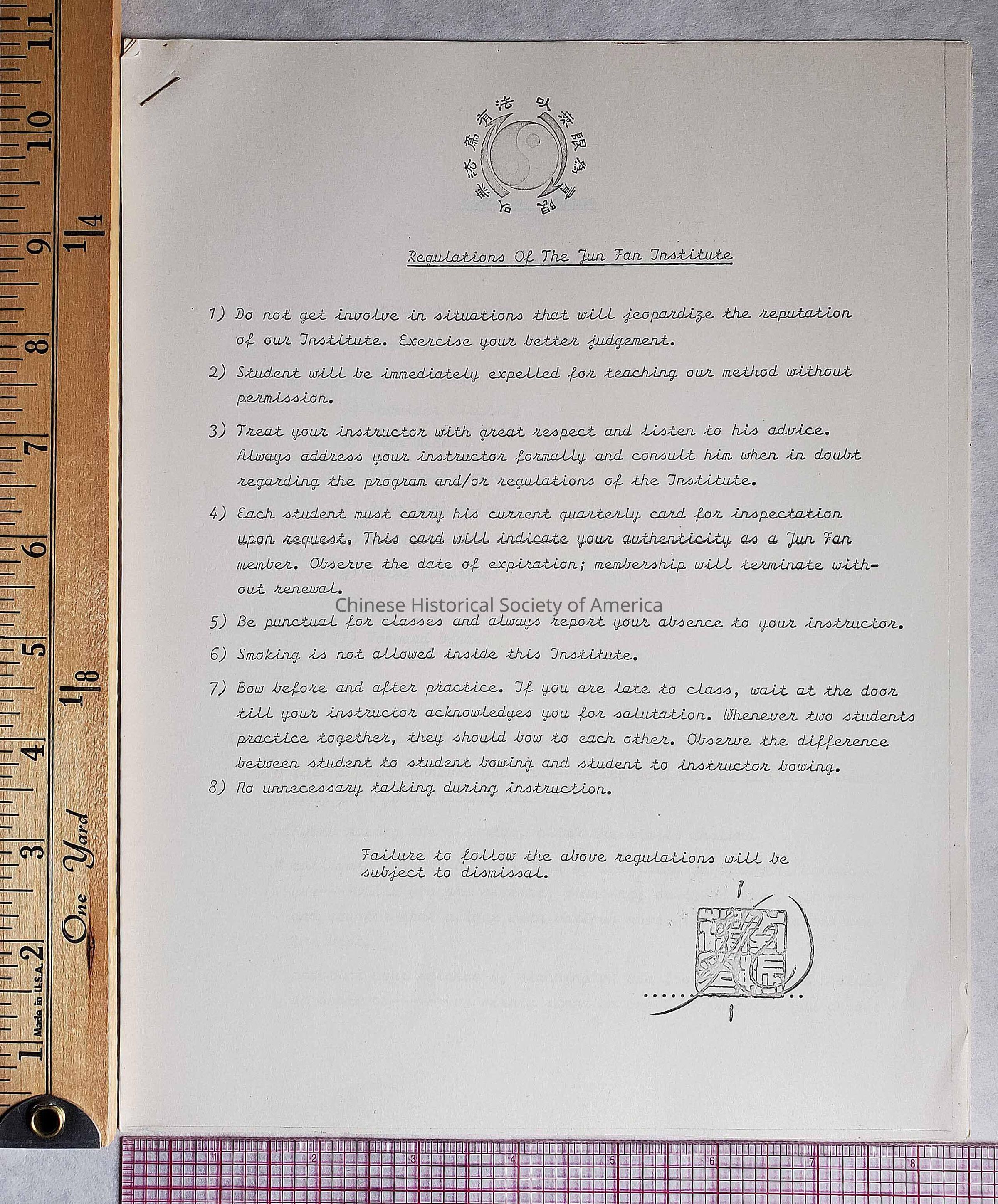 Jun Fan Gung Fu Institute Regulations Paper