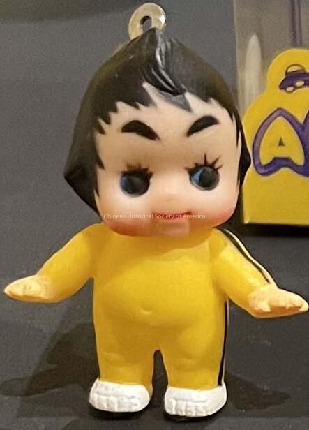 The doll is made to look like Bruce Lee wearing the yellow Game of Death jumpsuit.