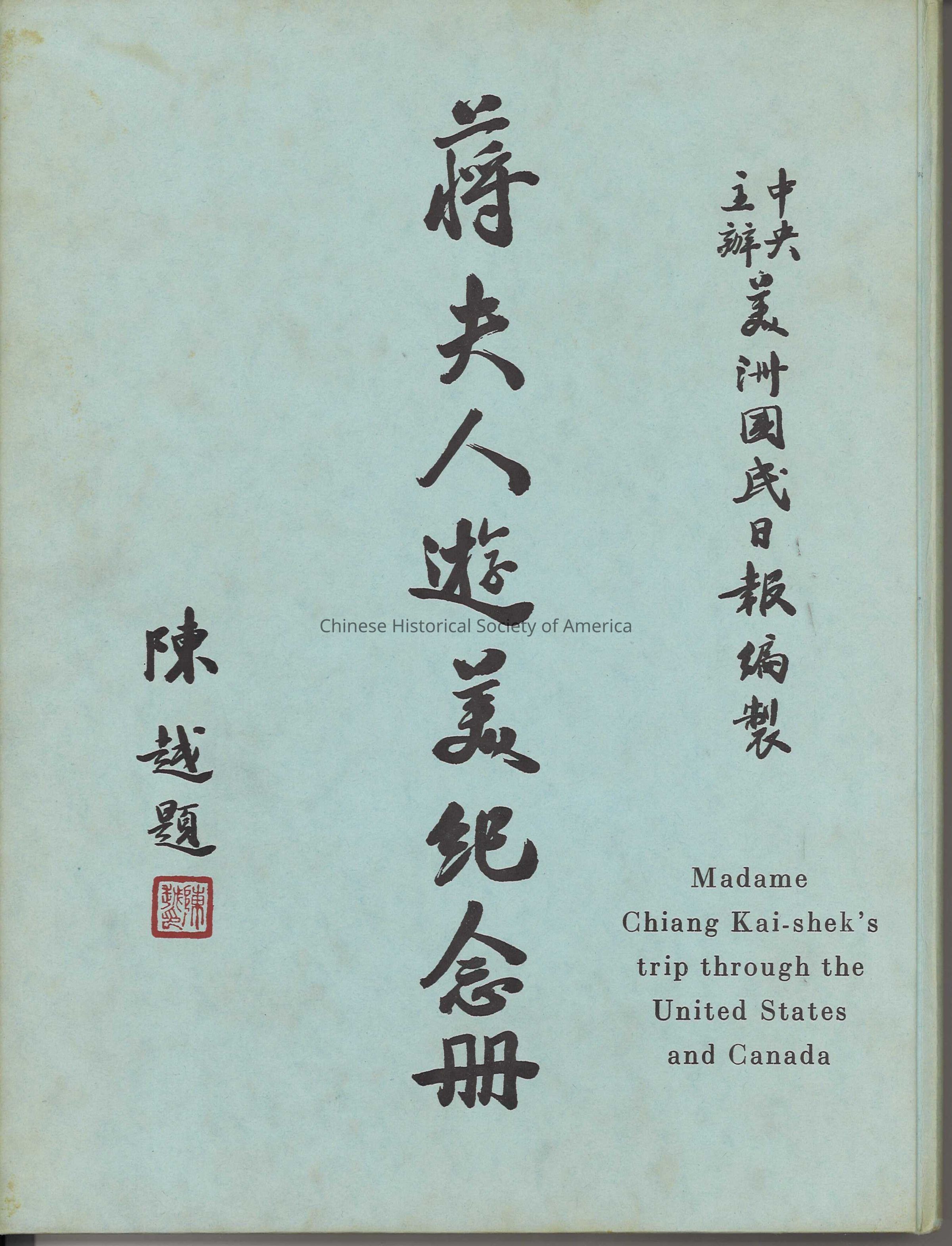 Madame Chiang Kai-shek's trip through the United States and CanadaEntry/Object ID