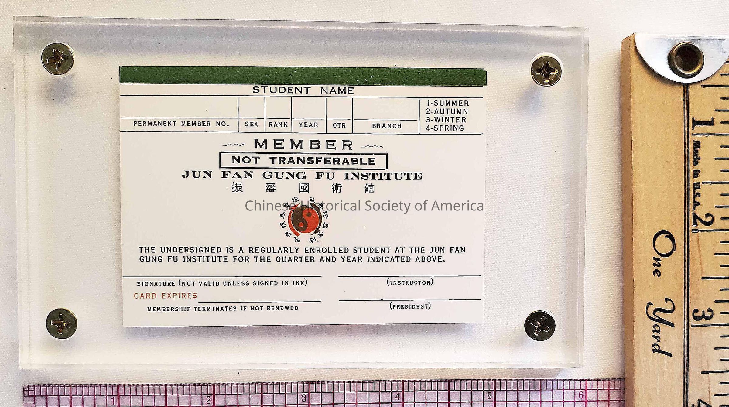 Membership Card Jun Fan Gung Fu Institute (Green)Entry/Object ID