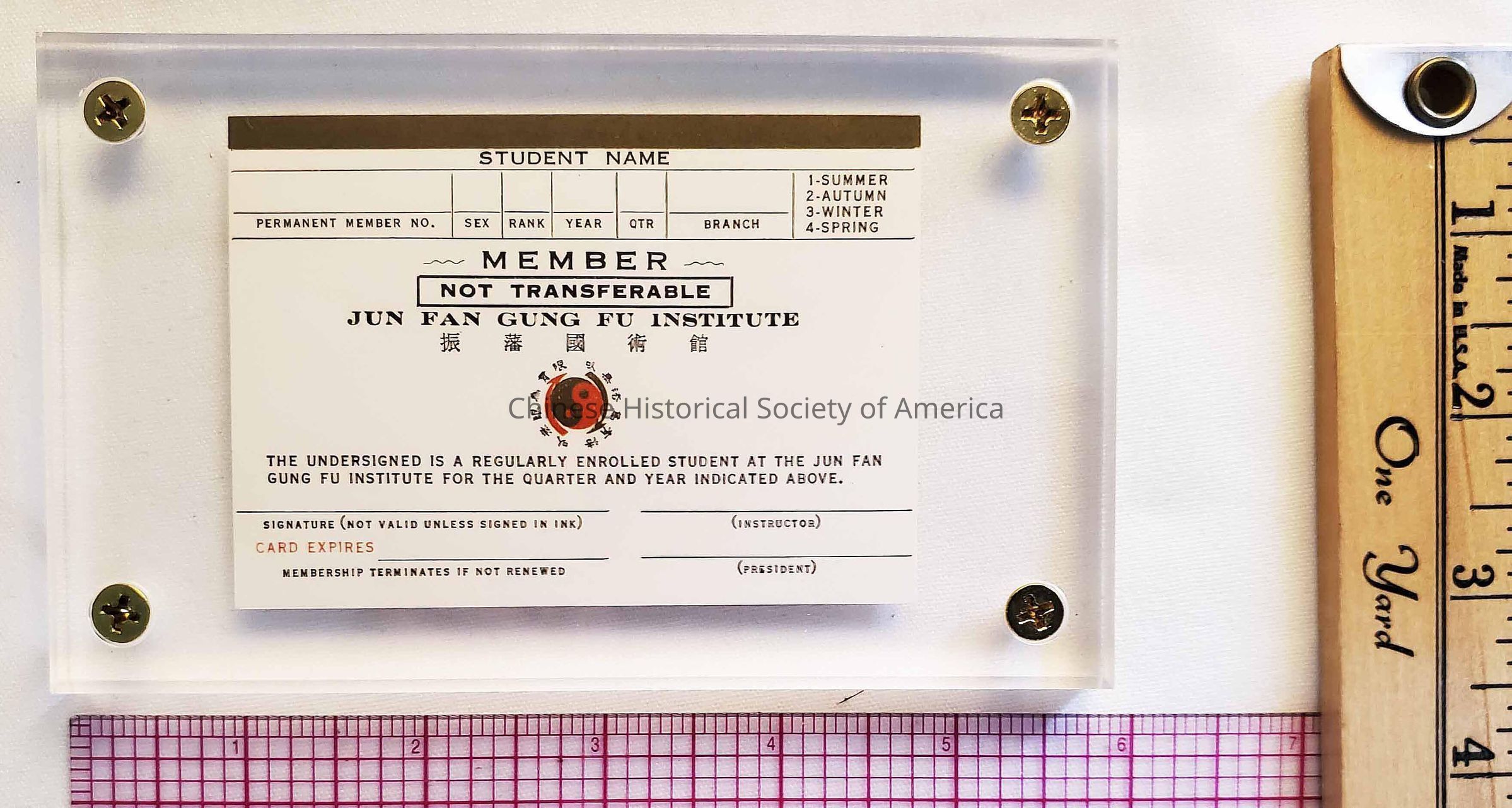 Membership Card Jun Fan Gung Fu Institute (Olive)Entry/Object ID