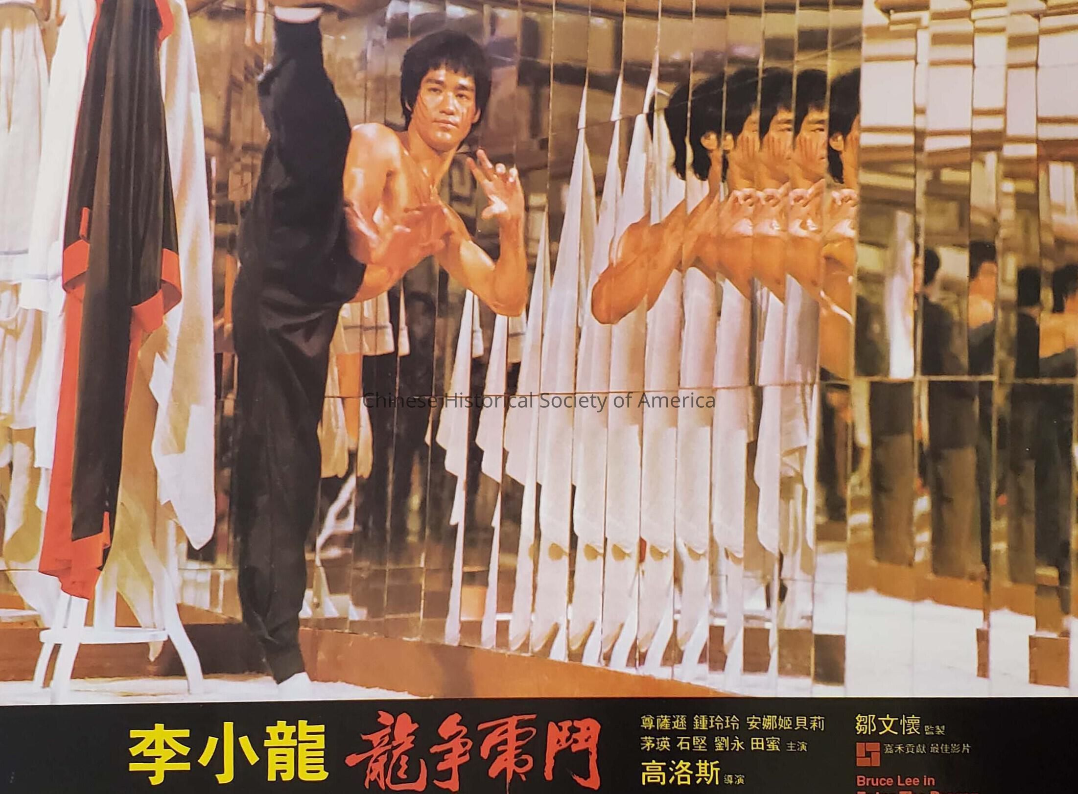 Bruce Lee in a high kick for the movie Enter the Dragon. The text is primarily traditional Cantonese. Printed on heavy weight card stock poster in color.Dimensions