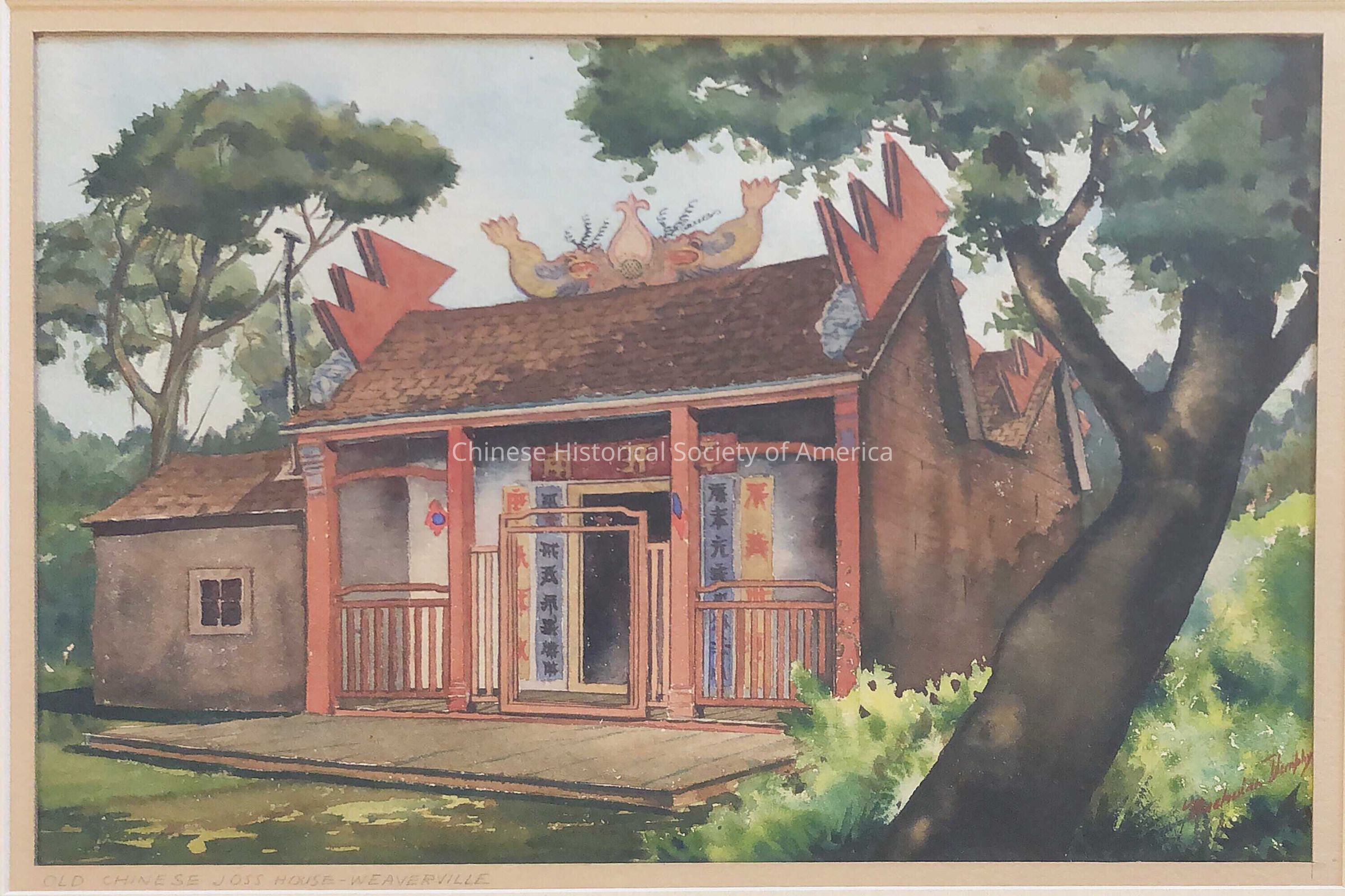 Watercolor of "Old Chinese Joss House-Weaverville