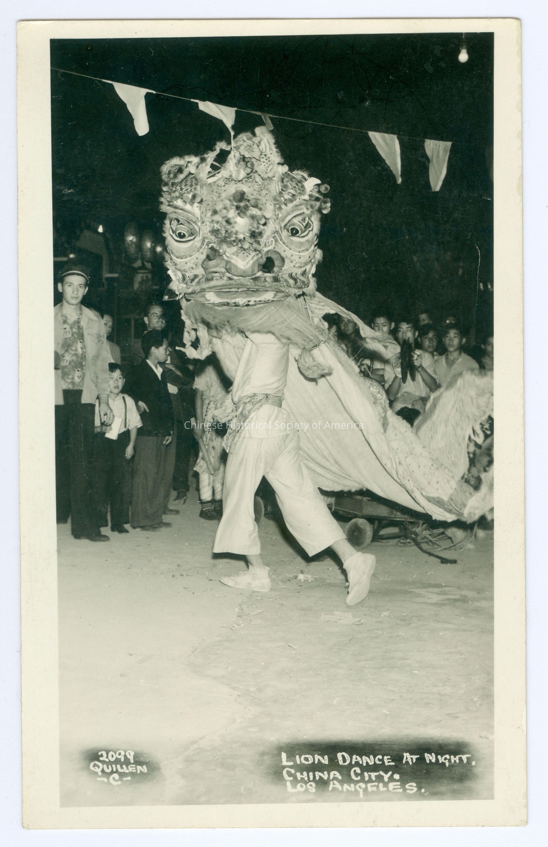 Front: Caption: "Lion Dance At Night China City. Los Angeles." "2099 Quillen-C-." Back: Old Accession #: EFG