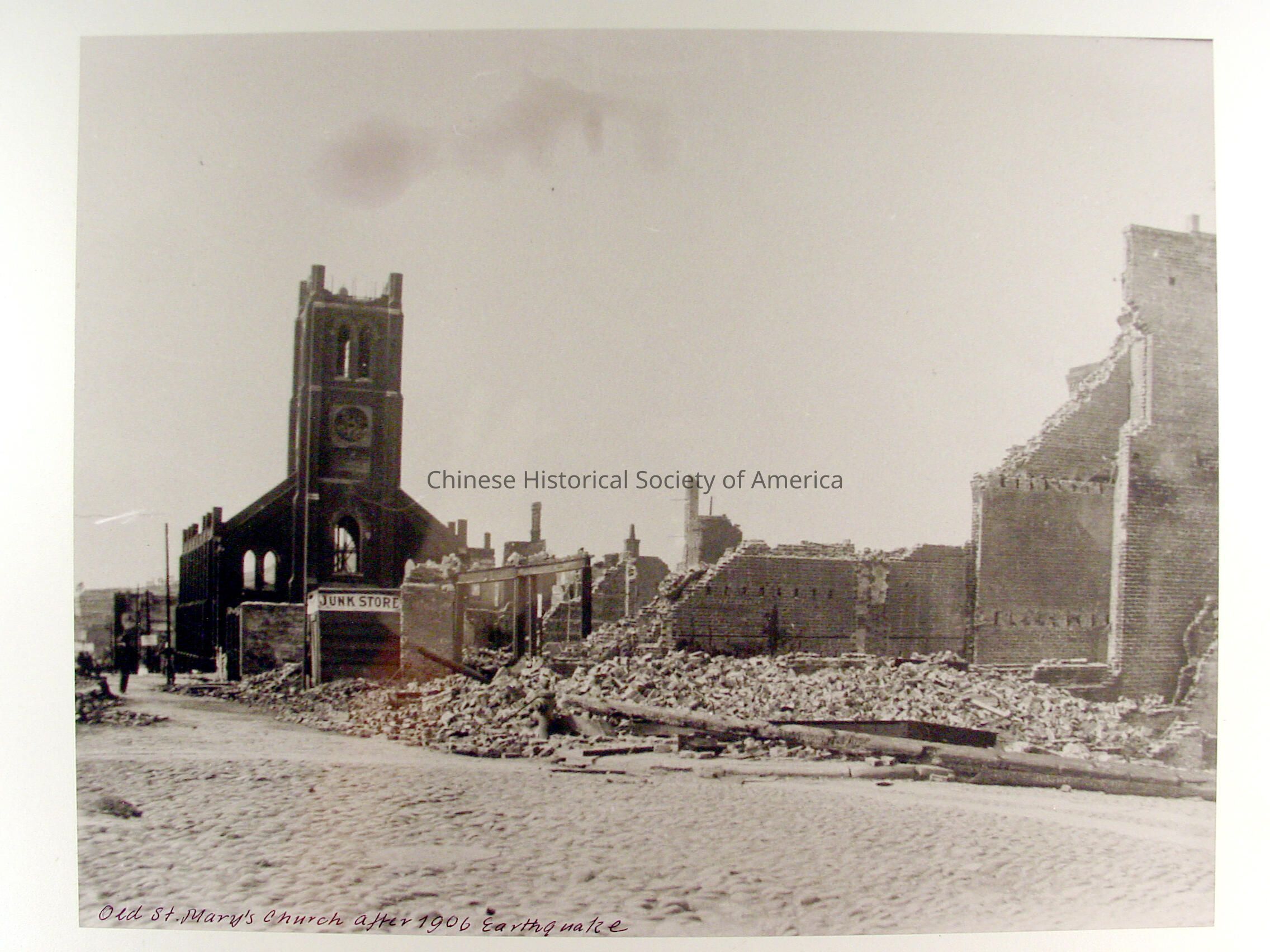 Photograph, Chinatown, Old St. Mary's Church, Californian & Dupont Sts., 1906, SF