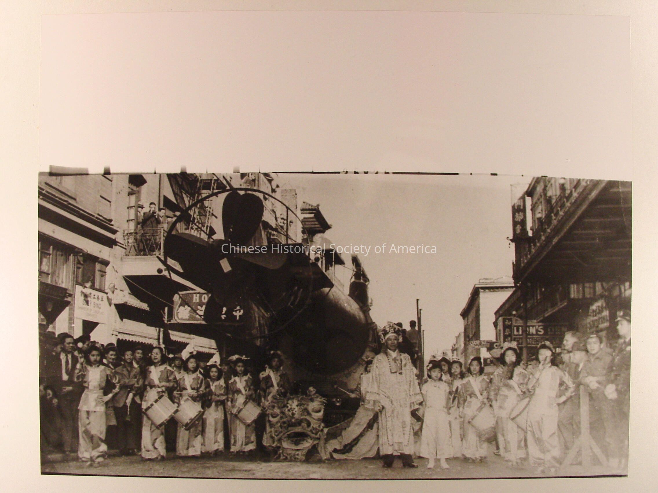 Photograph, Chinatown, War Bond Campaign with captured Japanese submarine, SF