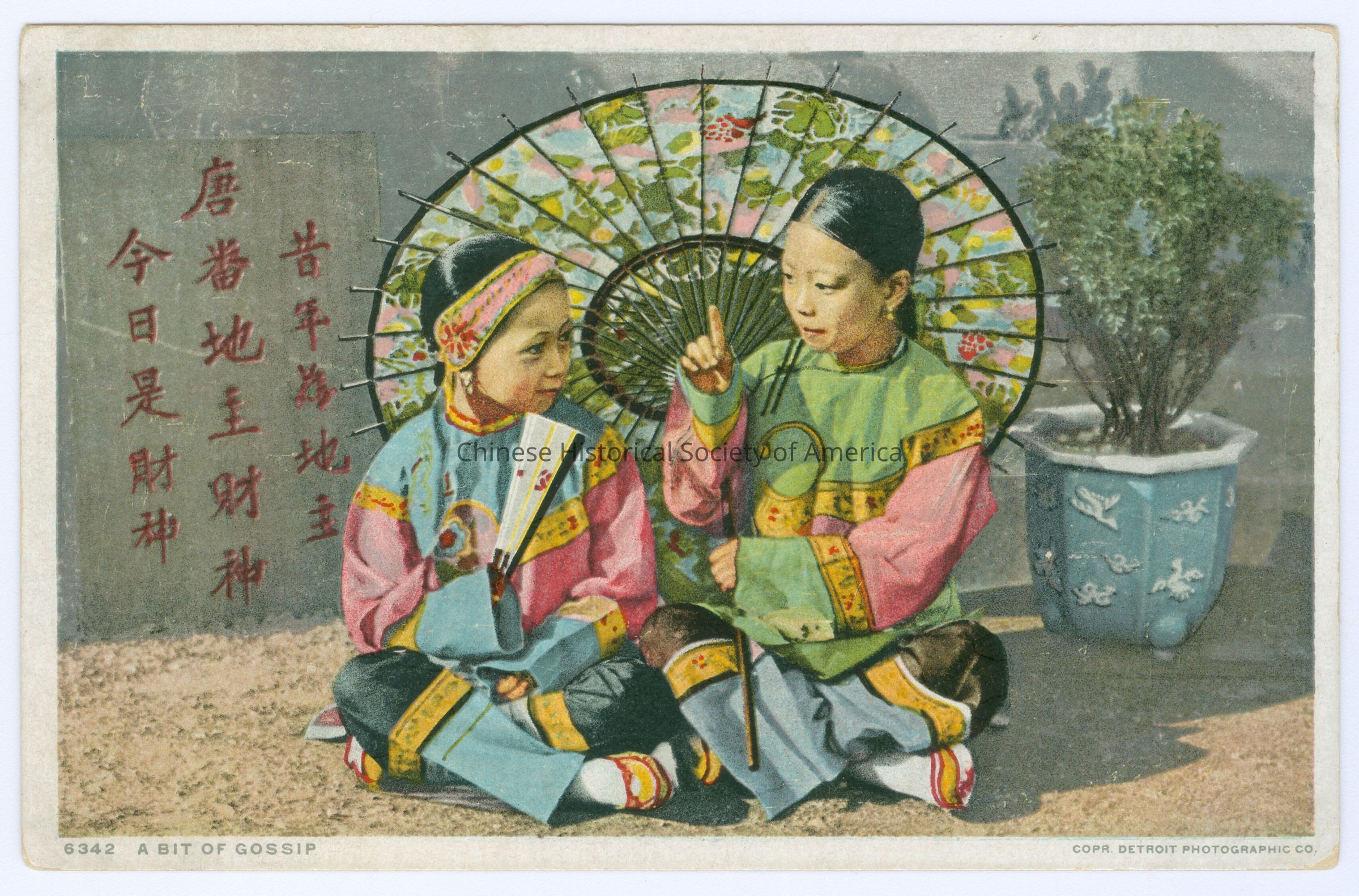 Front: Caption: "6342 A Bit of Gossip." "Copr Detroit Photographic Co." Back: Old Accession #: A)-