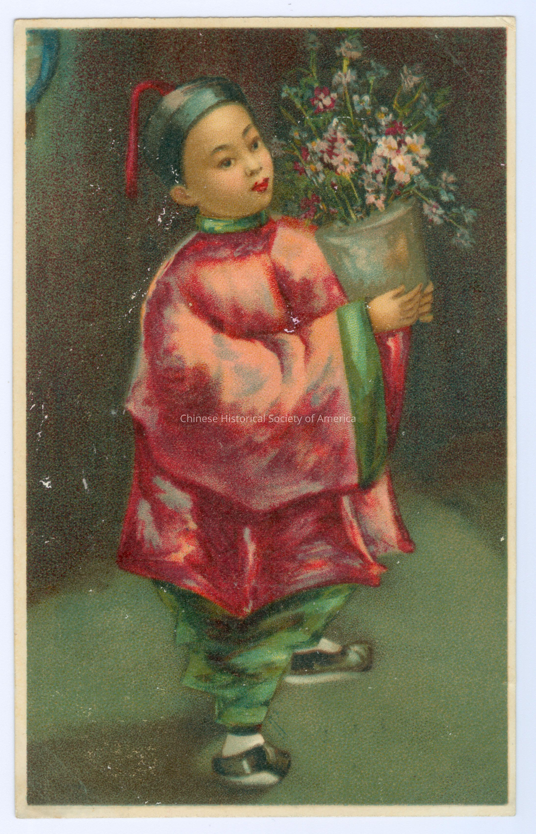 Postcard, A Chinese Boy Holding a Pot of FlowersEntry/Object ID
