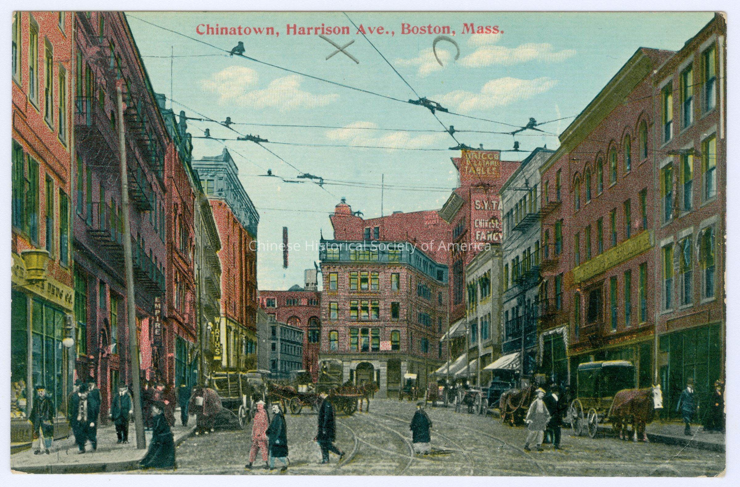 Front: Caption: "Chinatown, Harrison Ave., Boston, Mass." Back: Old Accession #: D)-