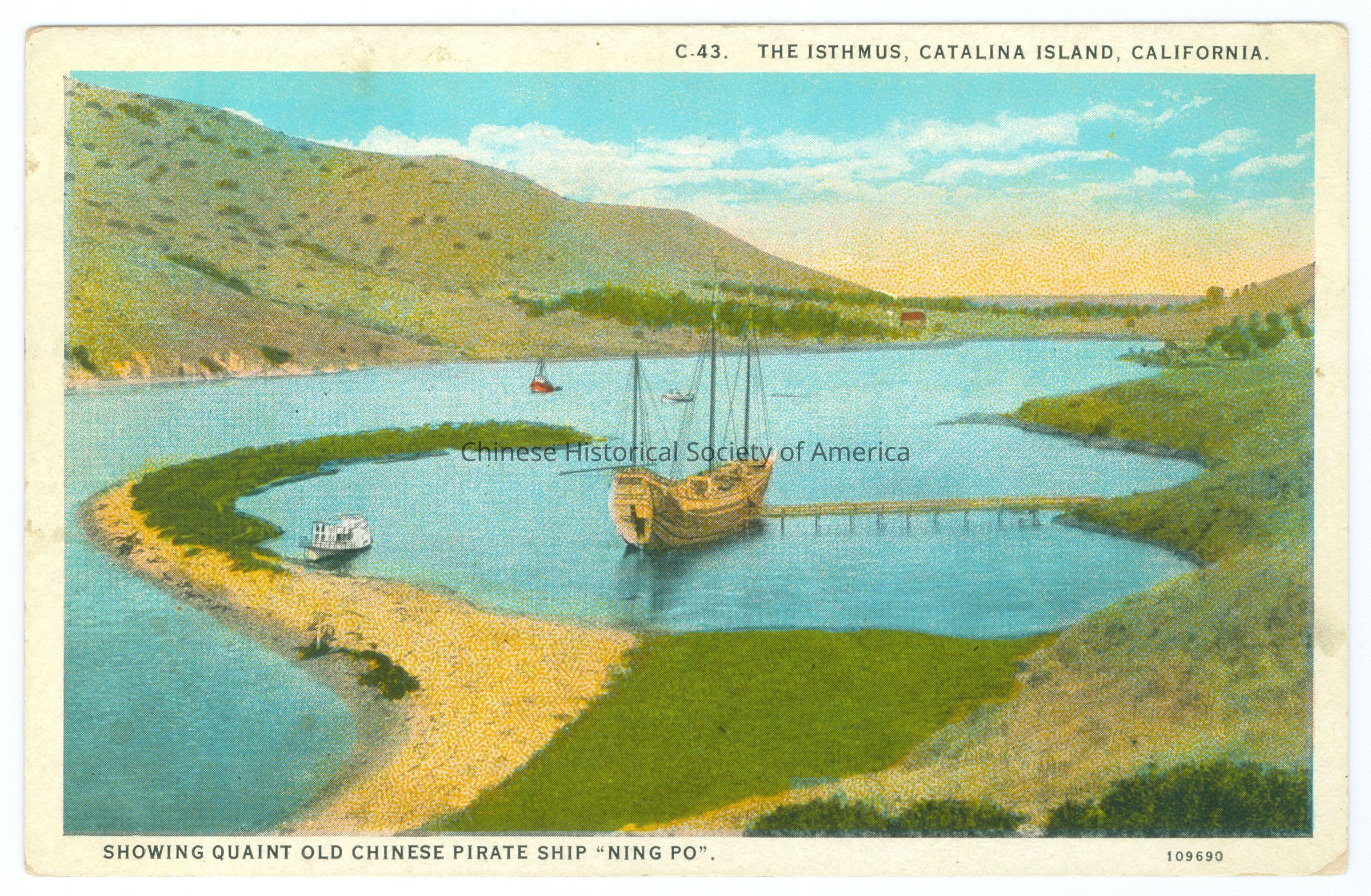 Front: Caption: "Showing Quaint Old Chinese Pirate Ship "Ning Po."; The Isthmus, Catalina Island, California." "109690." Back: "Western Publishing & Novelty Co., Los Angeles, Cal." Old Accession #: DAE