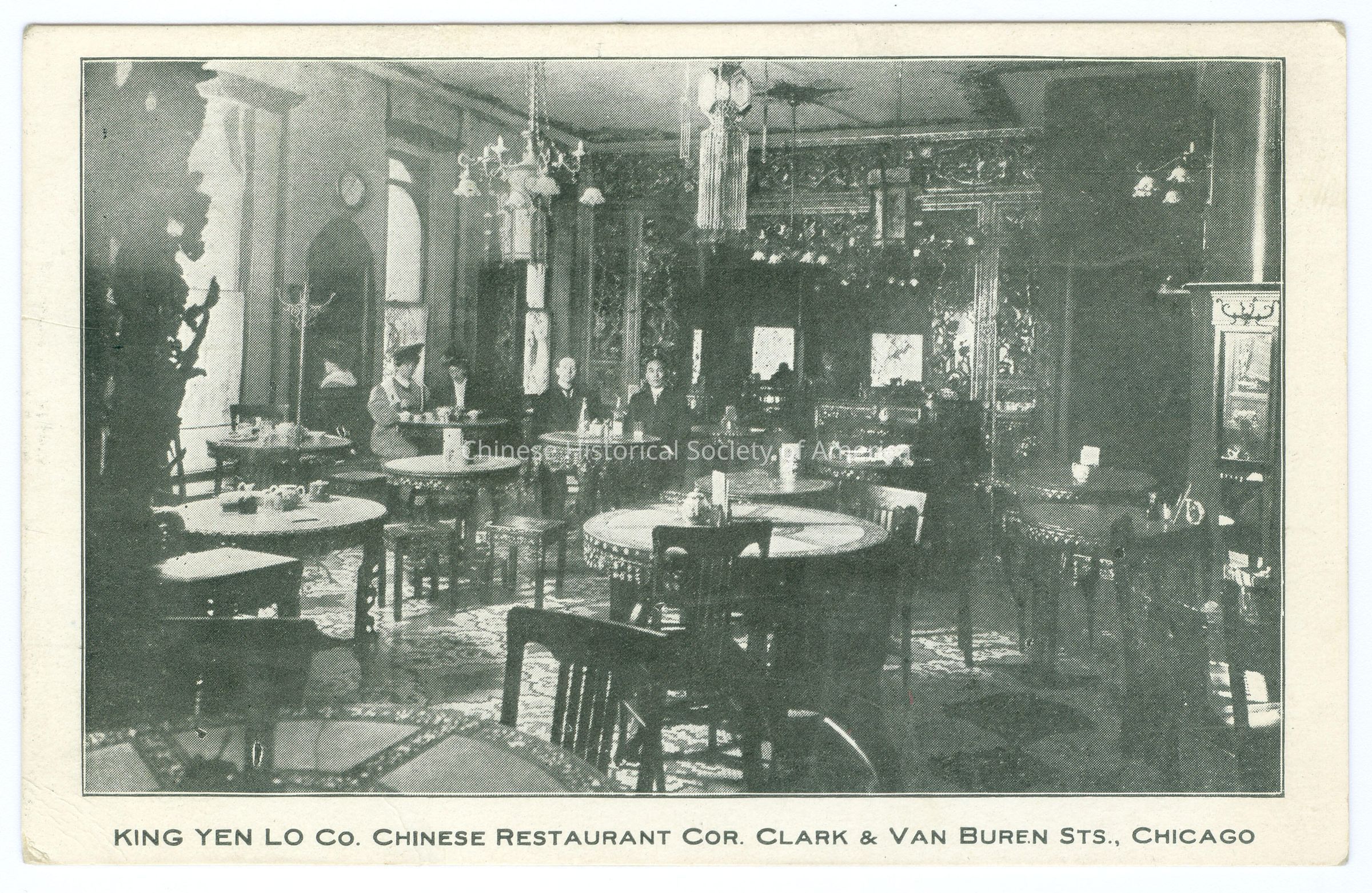 See CHSA-04709-04710. A-B: Front: Caption: "King Yen Lo Co. Chinese Restaurant Cor. Clark & Van Buren Sts., Chicago." A: Back: Old Accession #: A)-.