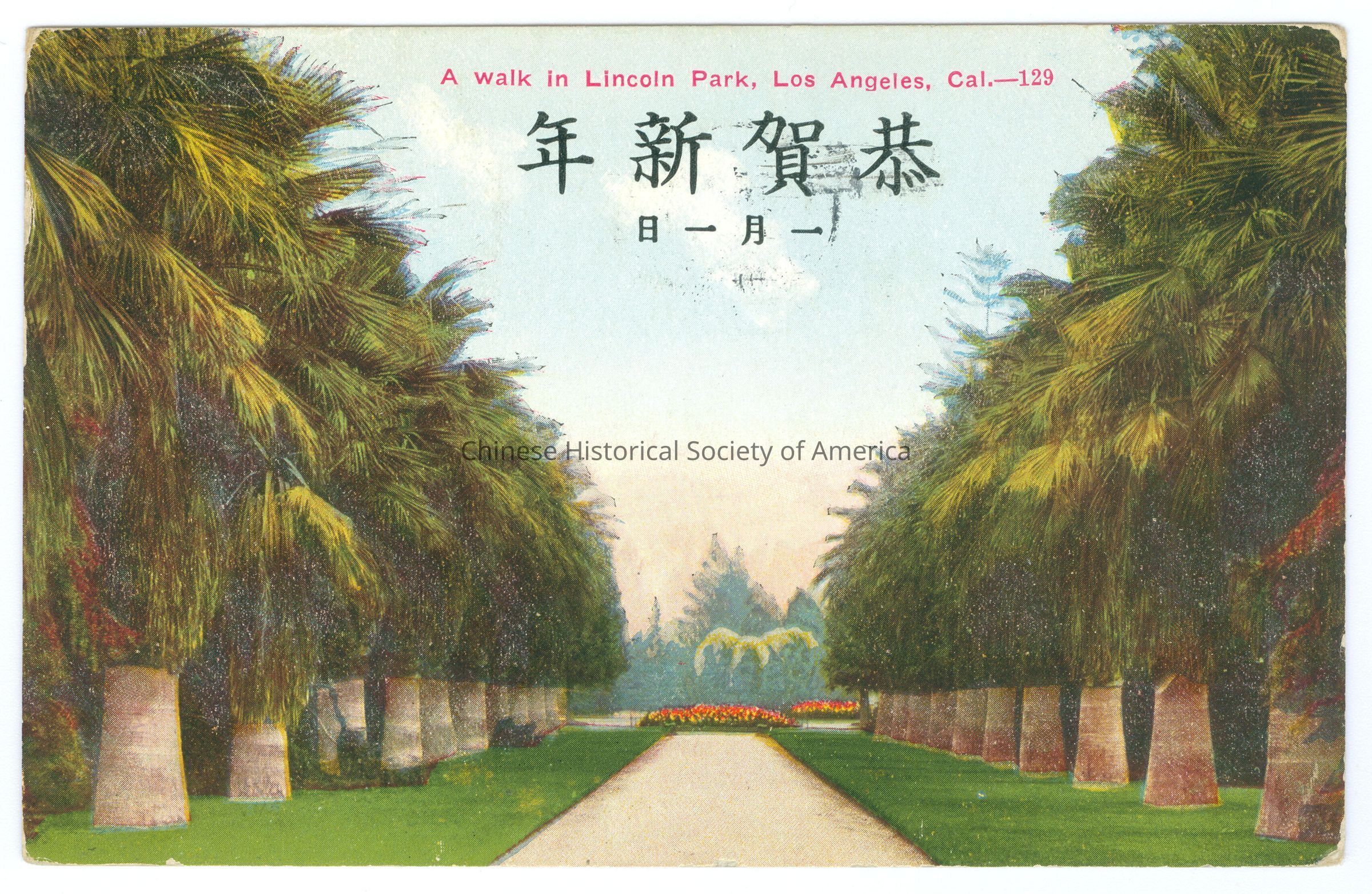 Postcard, Los Angeles, A Walk in Lincoln Park, Los Angeles, Cal,-129Entry/Object ID