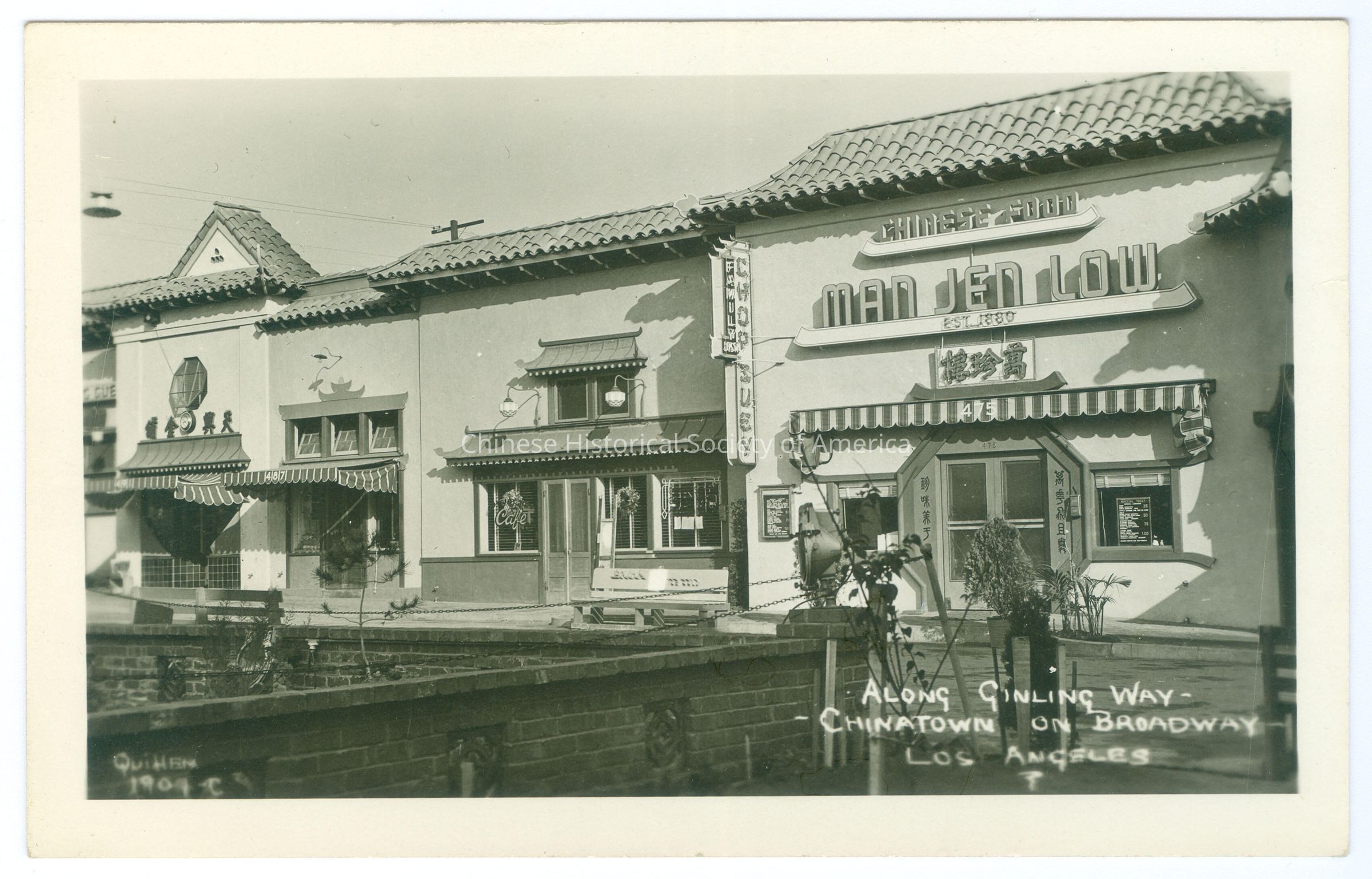 Front: Caption: "Along Ginling Way Chinatown on Broadway Los Angeles." "Quillen 1904 C." Back: Old Accession #: GEX