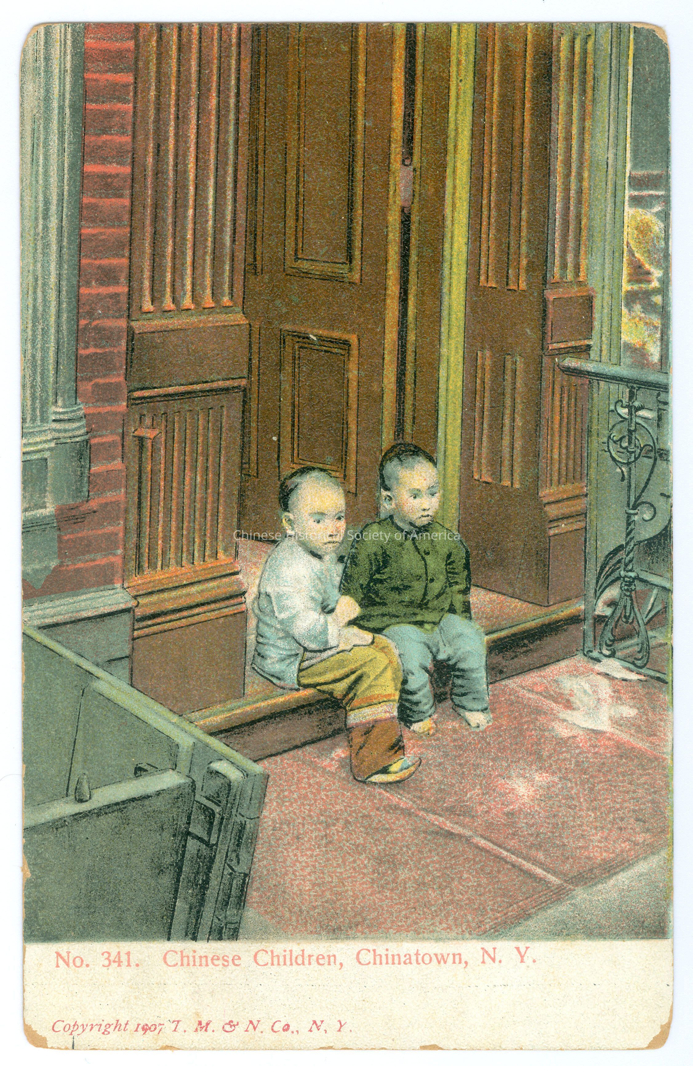 Front: Caption: "No. 341. Chinese Children, Chinatown, N.Y." "Copyright 1907 T.M. & N. Co., N.Y." Back: Old Accession #: PCT