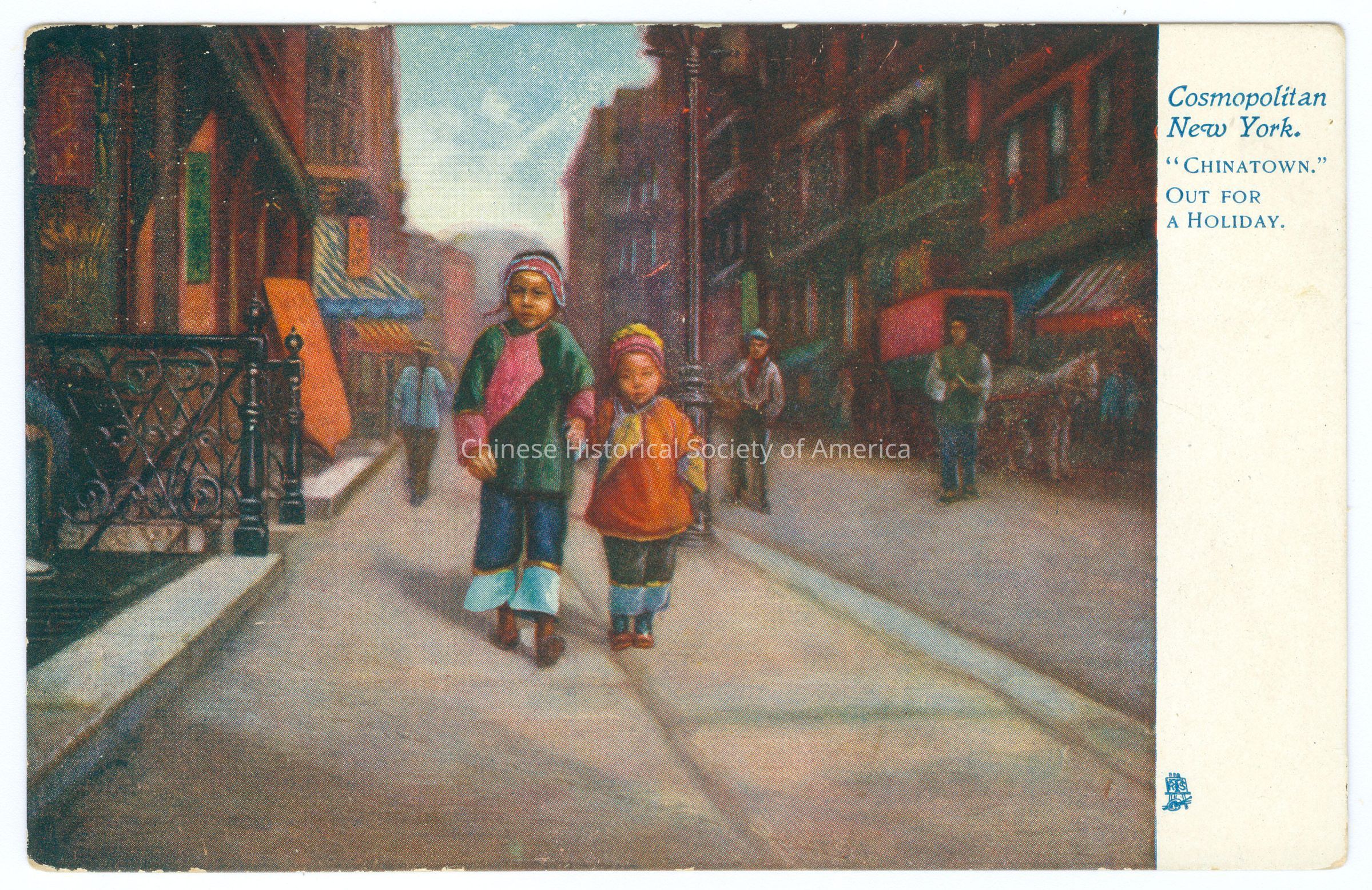 A-B: Front: Caption: "Cosmopolitan New York "Chinatown" Out For a Holiday." A: Back: ""Cosmopolitan New York"; "Raphael Tuck & Sons "Oilette" [Regd.] Postcard 1068. Art Publishers To Their Majesties the King and Queen." Old Accession #: A)-.