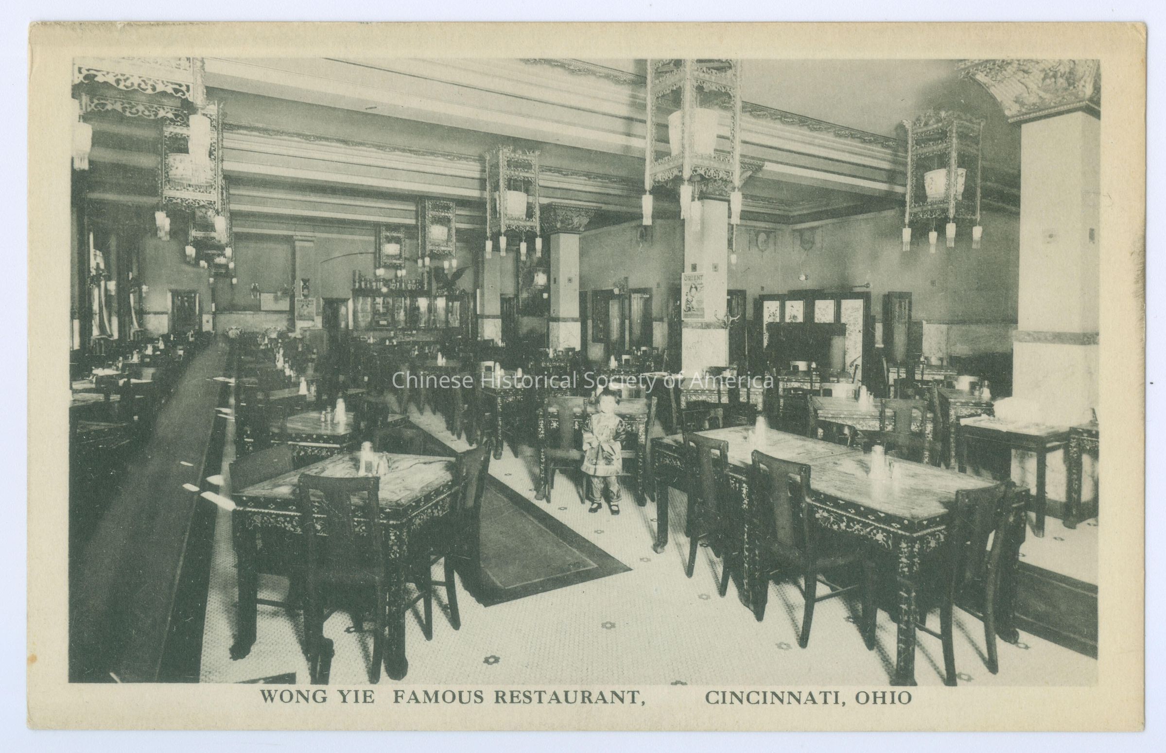 Front: Caption: "Wong Yie Famous Restaurant, Cincinnati, Ohio." Back: "Kraemer Art Cincinnati." Old Accession #: SET