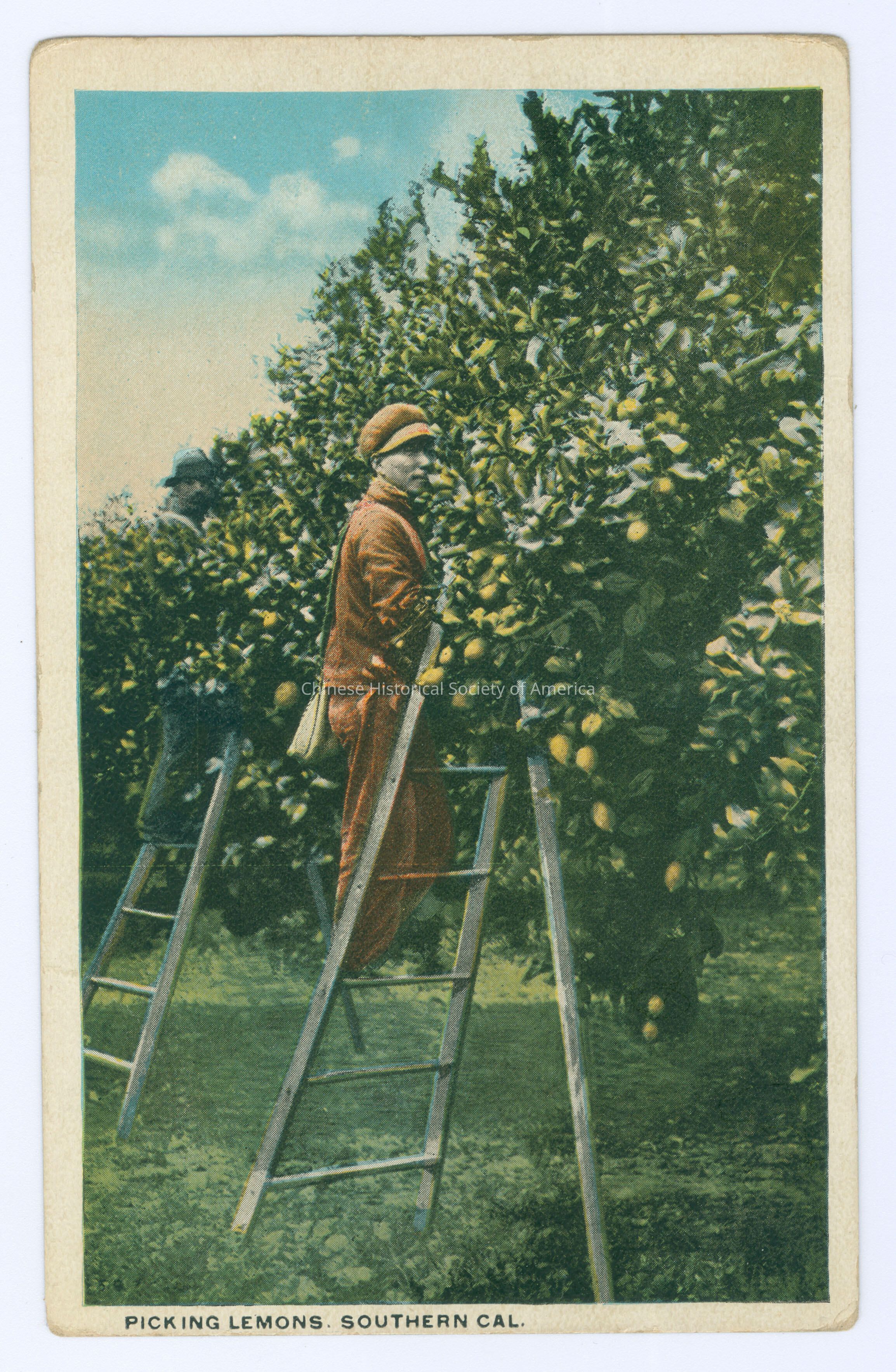 Front: Caption: "Picking Lemons Southern Cal." Back: "Published by Van Nuy-Interstate Company." Old Accession #: GEX