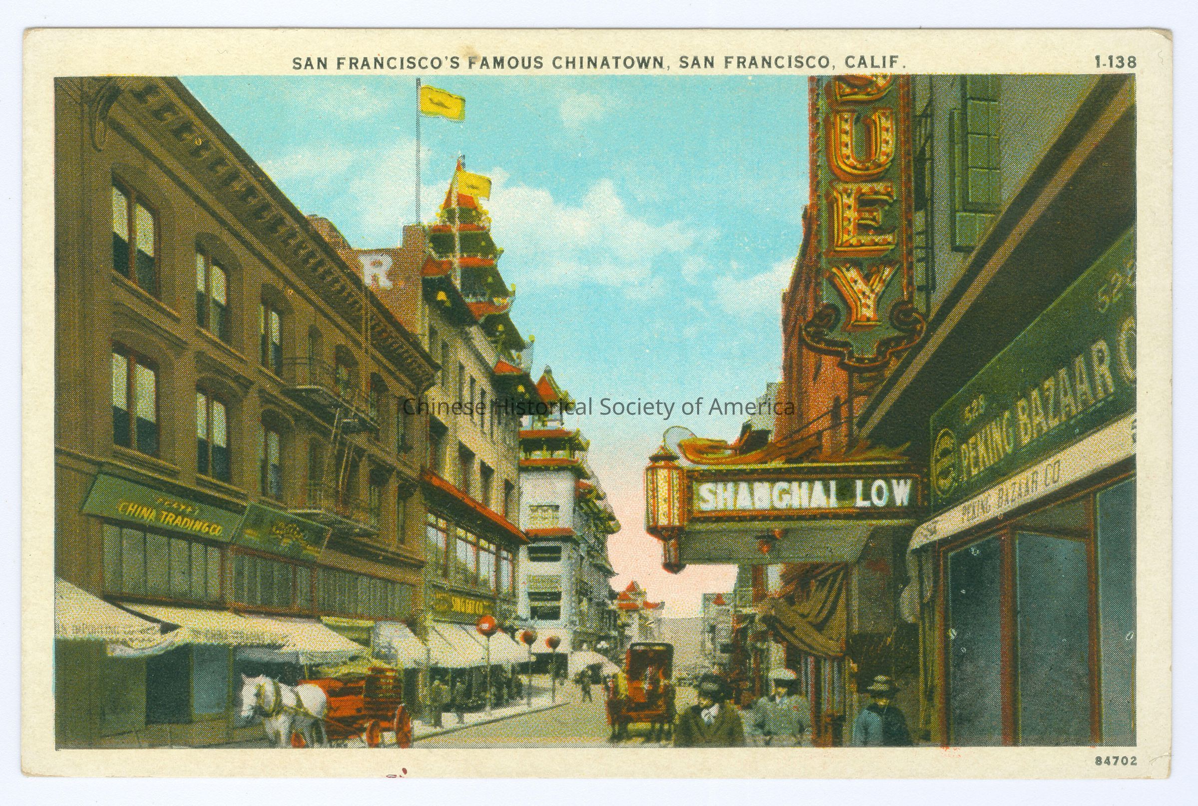 A: Front: Caption: "San Francisco's Famous Chinatown. San Francisco, Calif. 1.138." "84702." Back: "Pacific Novelty Co. San Francisco & Los Angeles." Old Accession #: N/A.