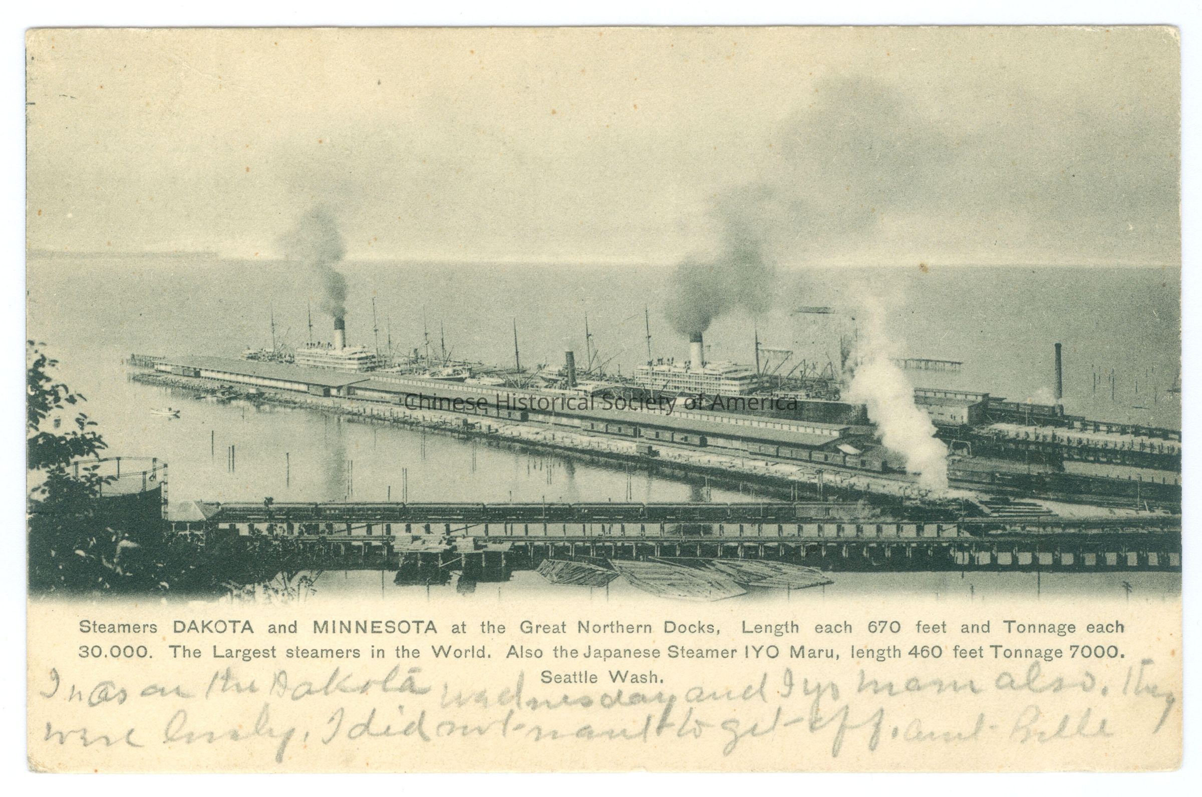Postcard, Seattle, Steamers Dakota and Minnesota at the Great Northern DocksEntry/Object ID